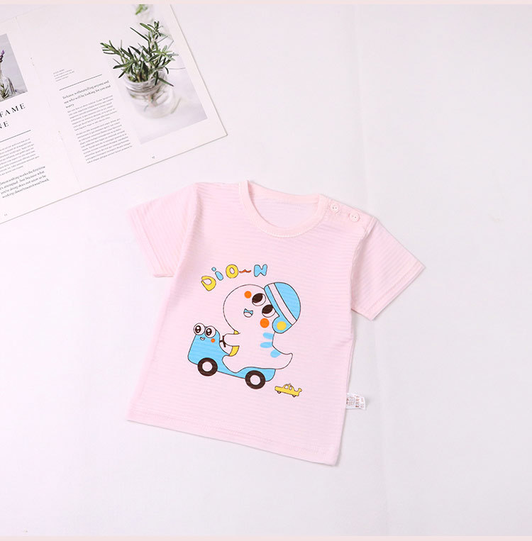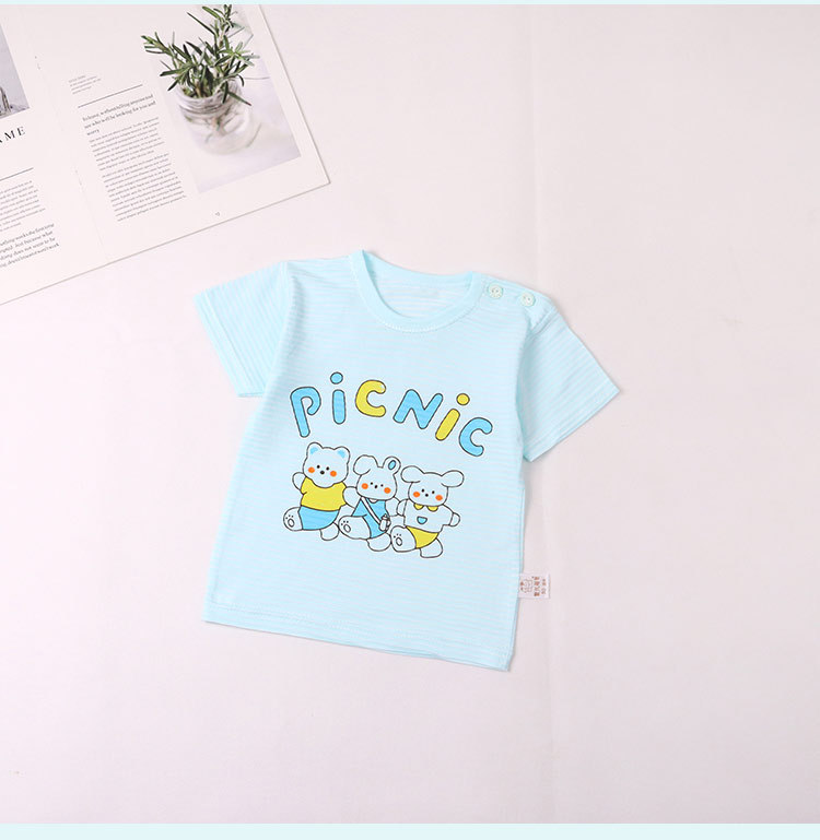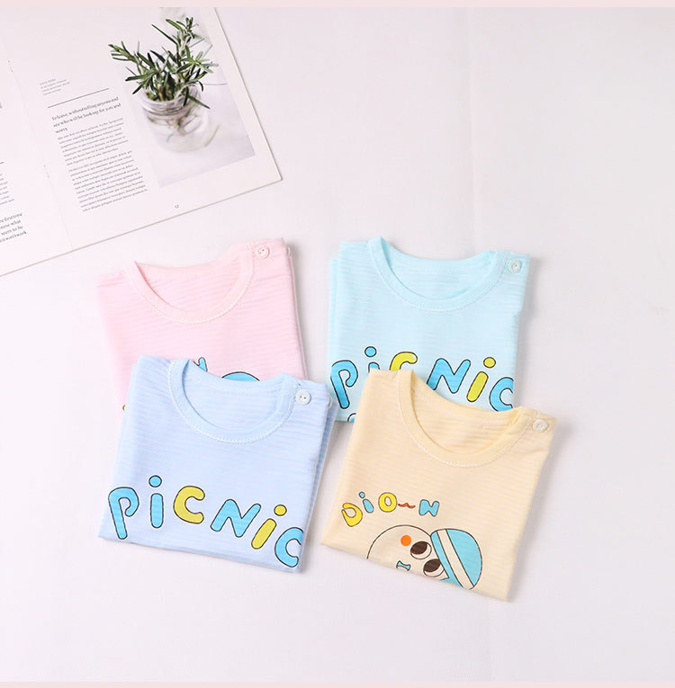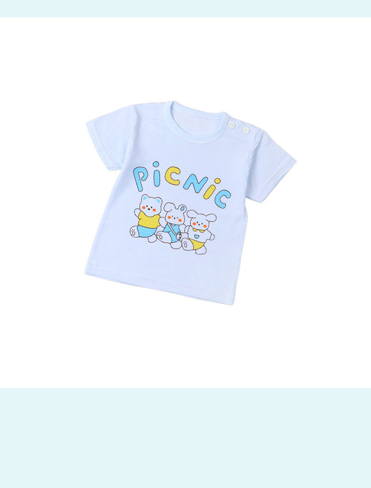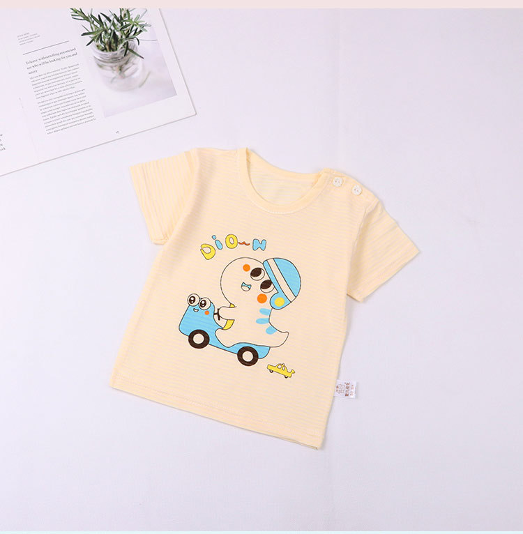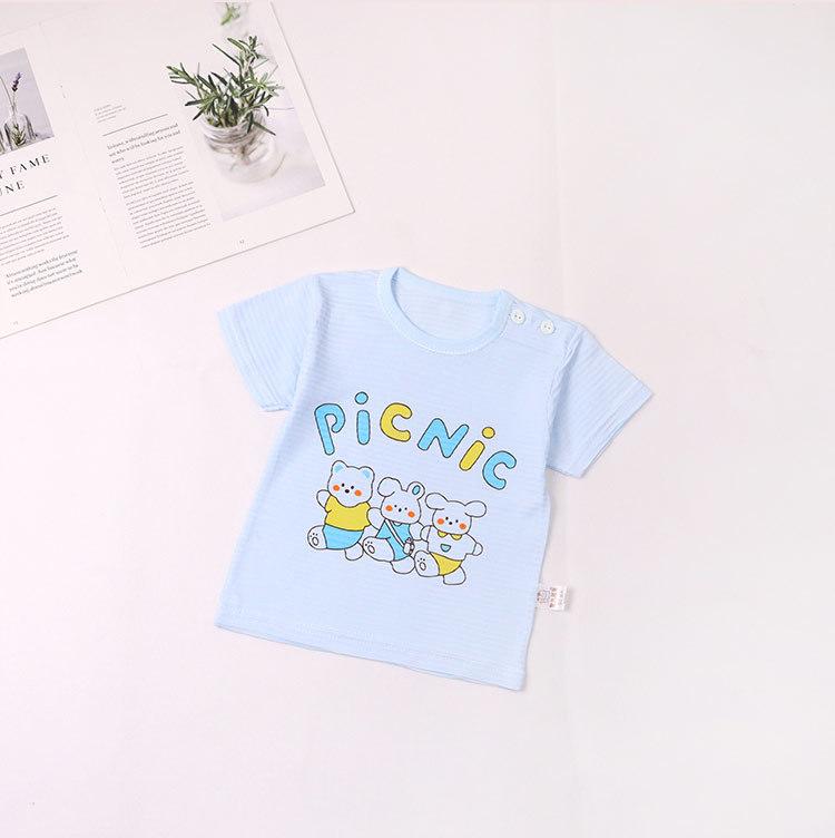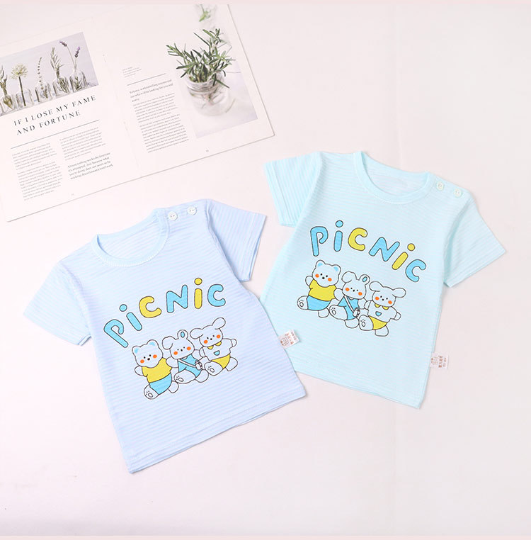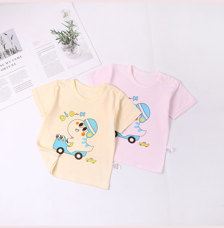 아기의 반팔 티셔츠 여름 얇은 순수 유리 다리 유아 0-3 세 코튼 탑 라운드 칼라 남녀 옷스토어 가기