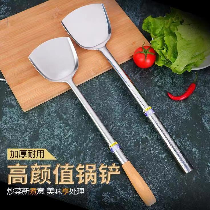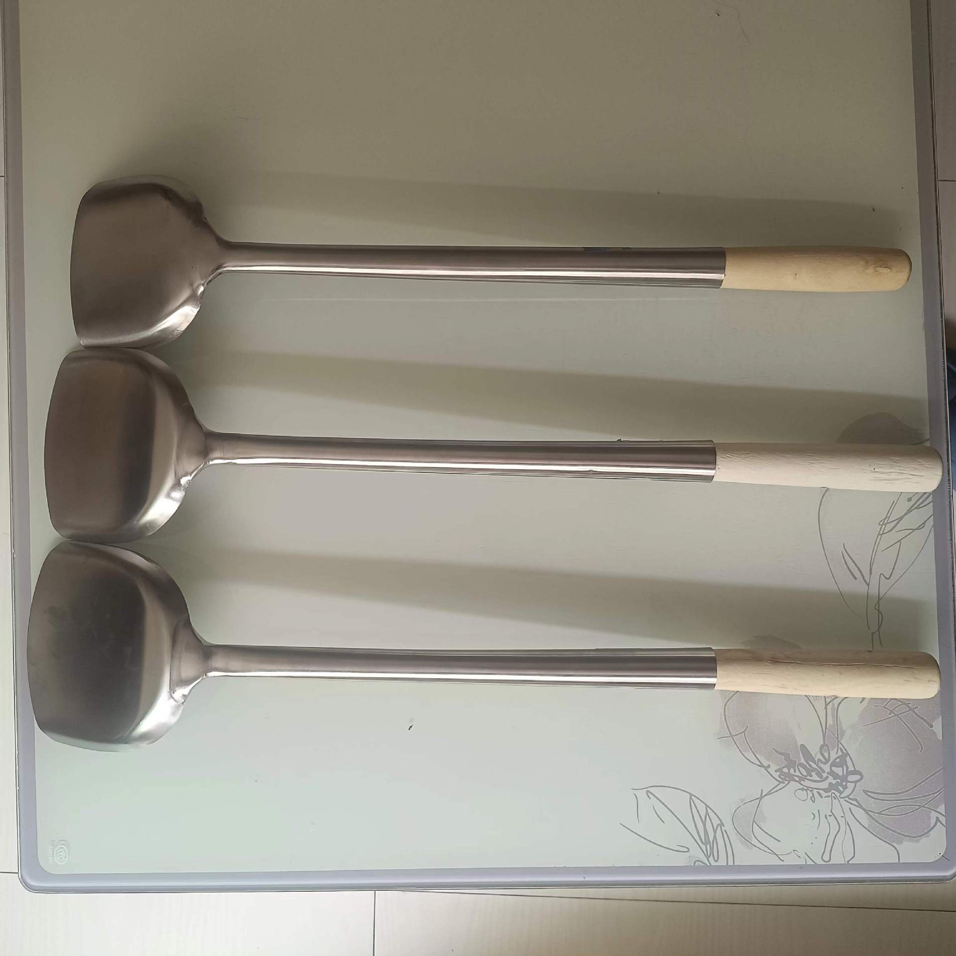 스테인레스 스틸 요리사 주걱 호텔 주방 특수 접시 주걱 나무 강철 손잡이 긴 손잡이 냄비 큰 삽 볶음 철 주걱