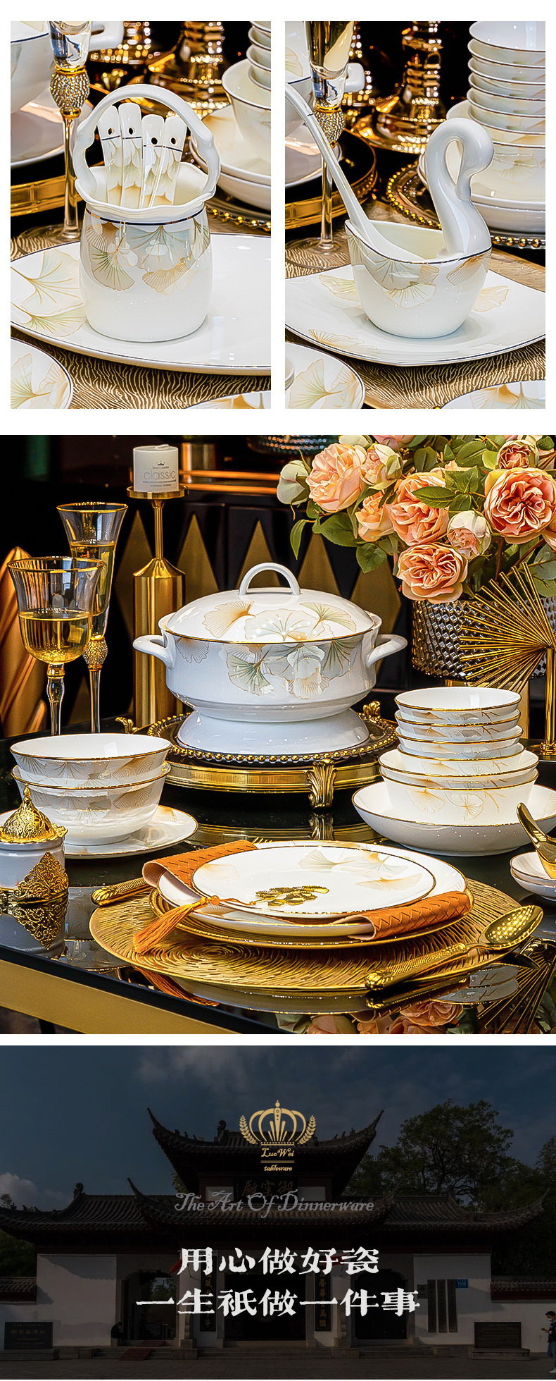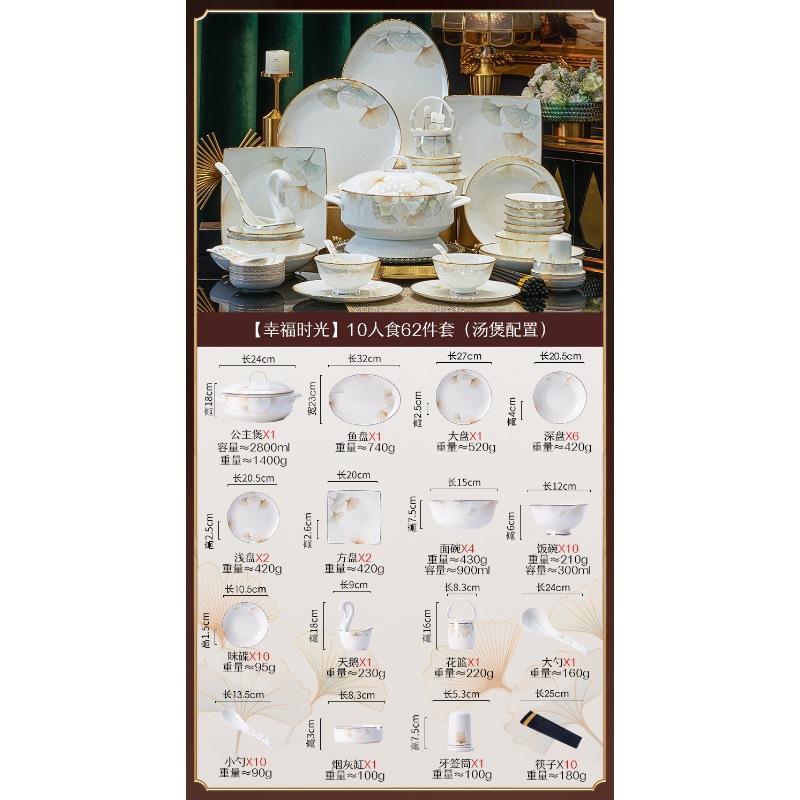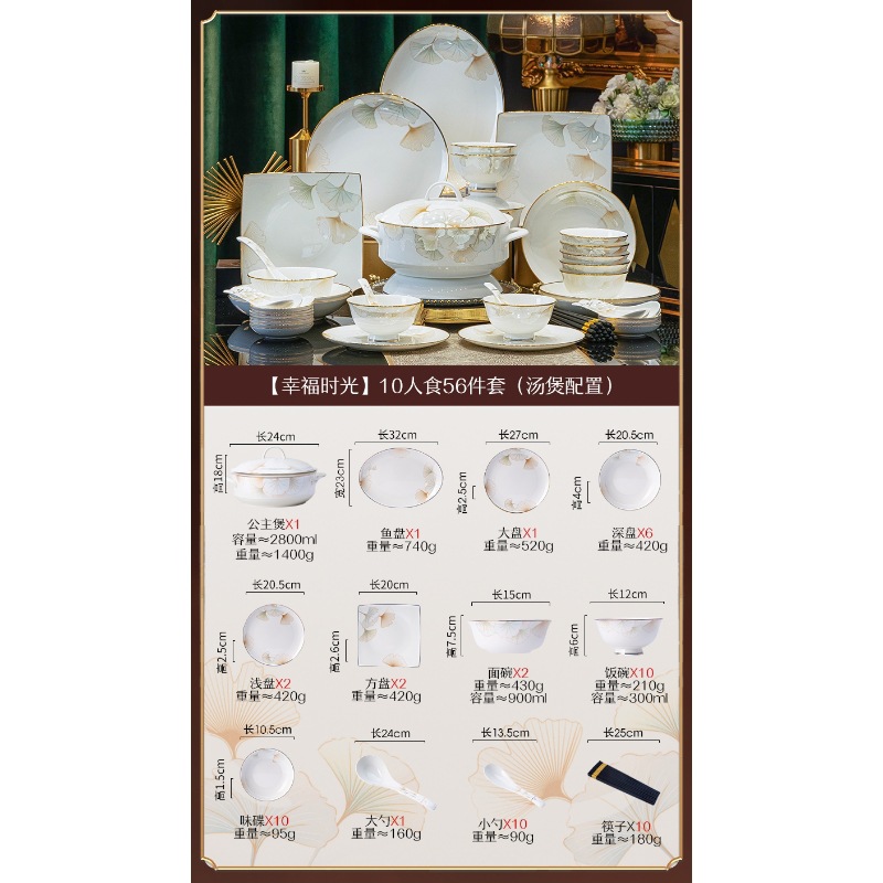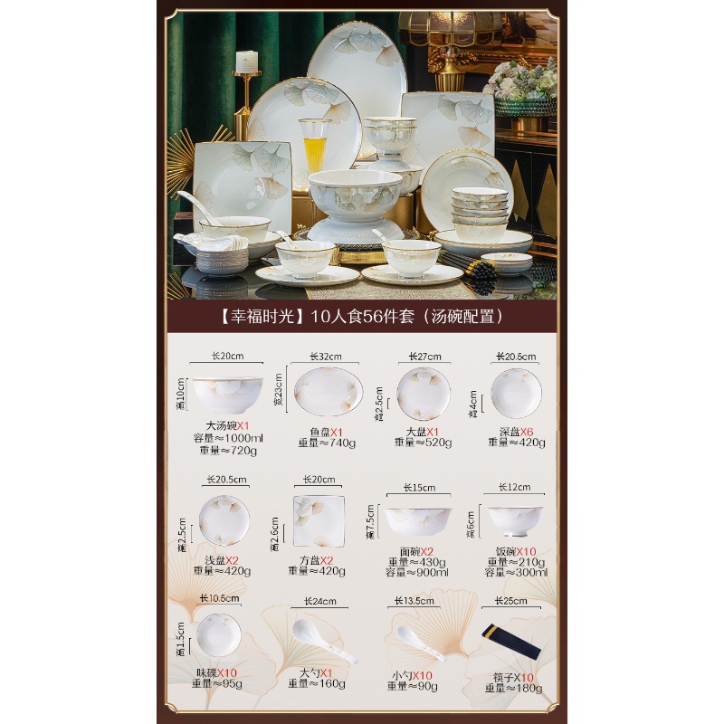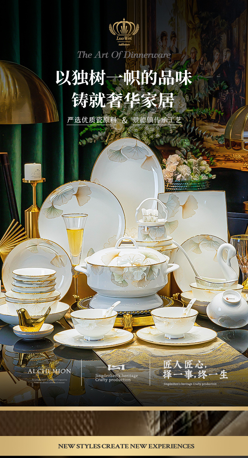 가정용 세트 요리 Jingdezhen 세라믹 식기 선물 세트 중국 스타일의 가벼운 고급 고급 고급 향기 요리 세트스토어 가기