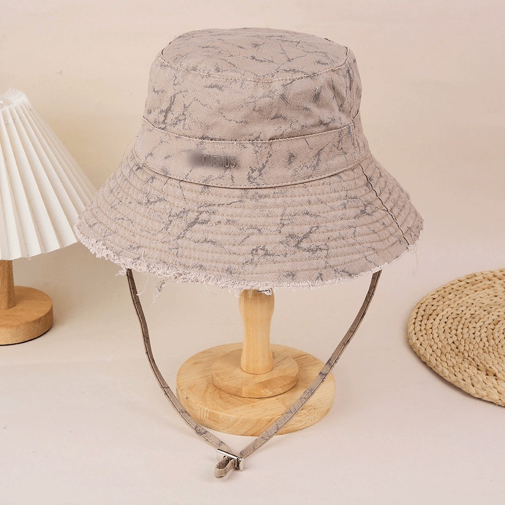 현아 코튼 어부 모자, 여름 목가적 스타일의 챙이 큰 조임끈 야외 등산 모자, 자외선 차단 및 통기성스토어 가기