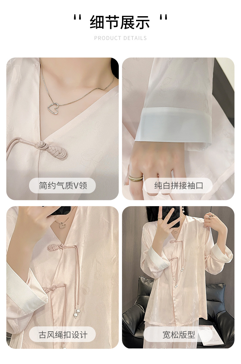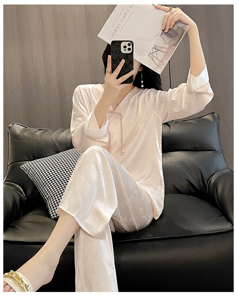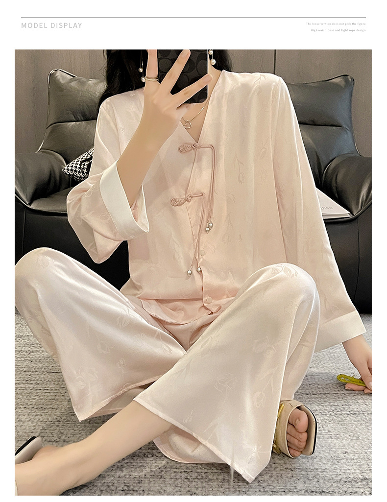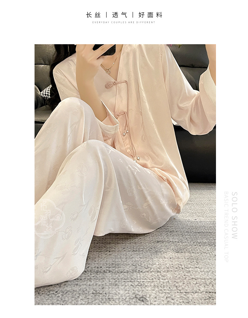 25 새로운 중국 잠옷 여성용 아이스 실크 봄과 가을 긴 소매 실크 세트 여름 하이 엔드 내셔널 스타일 홈 의류