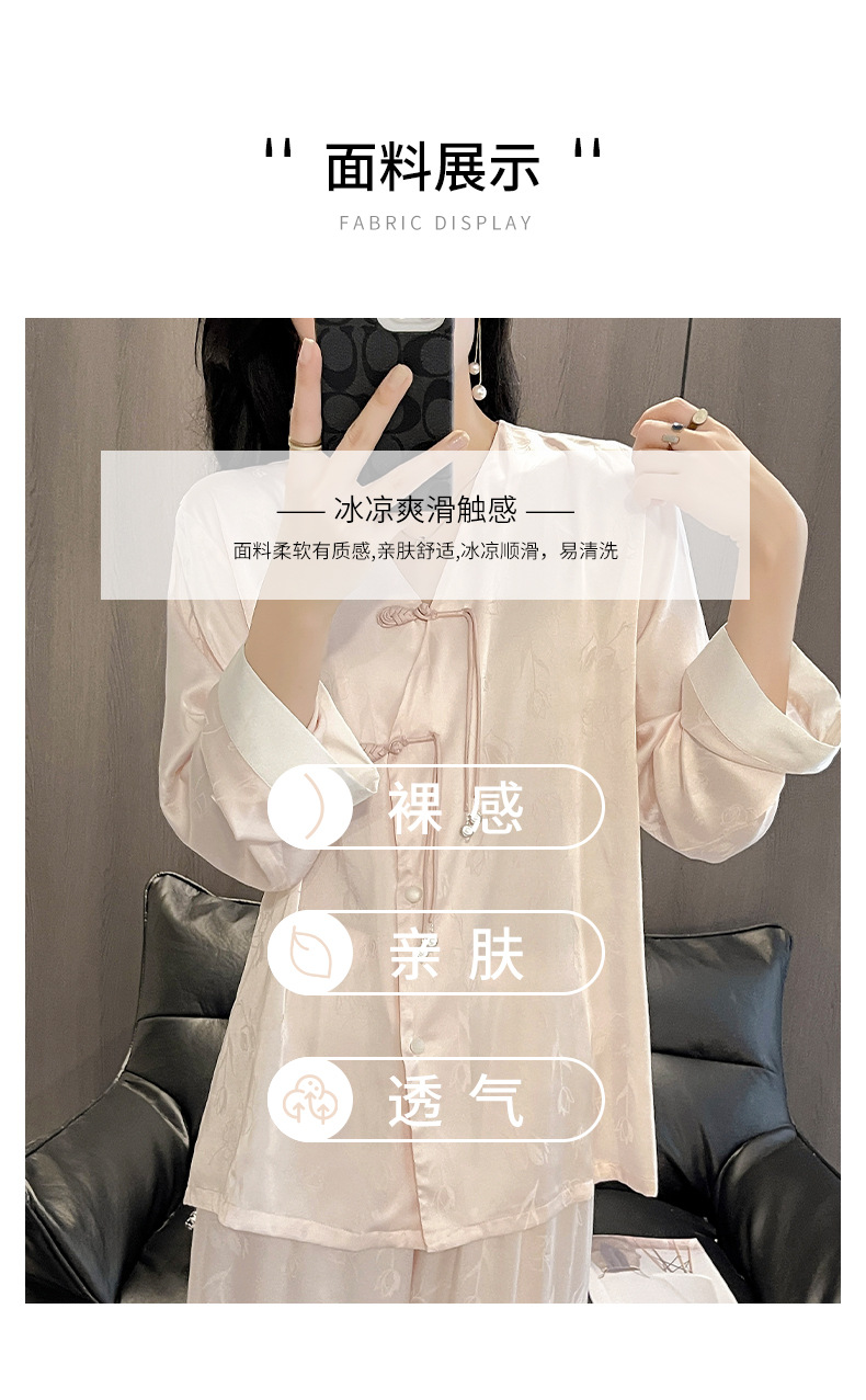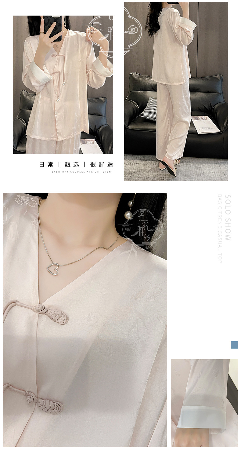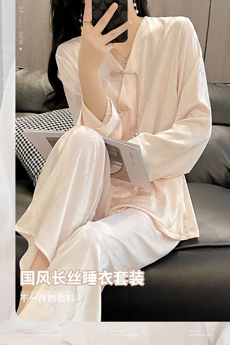 25 새로운 중국 잠옷 여성용 아이스 실크 봄과 가을 긴 소매 실크 세트 여름 하이 엔드 내셔널 스타일 홈 의류스토어 가기
