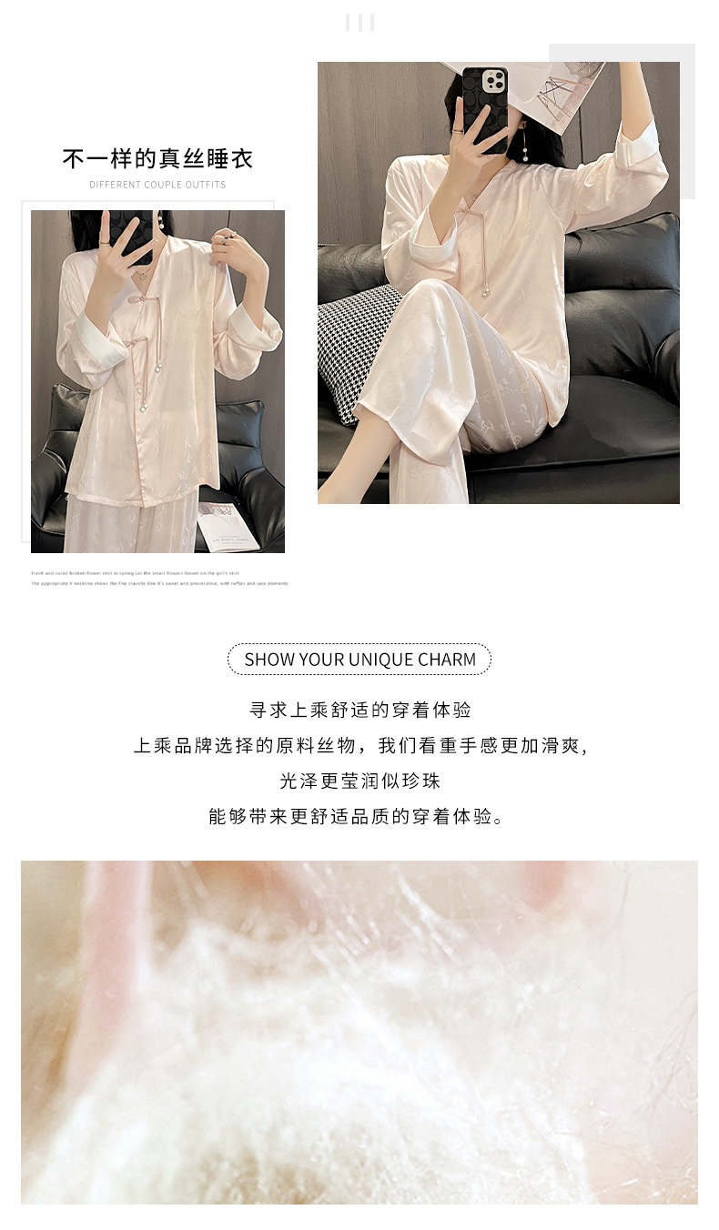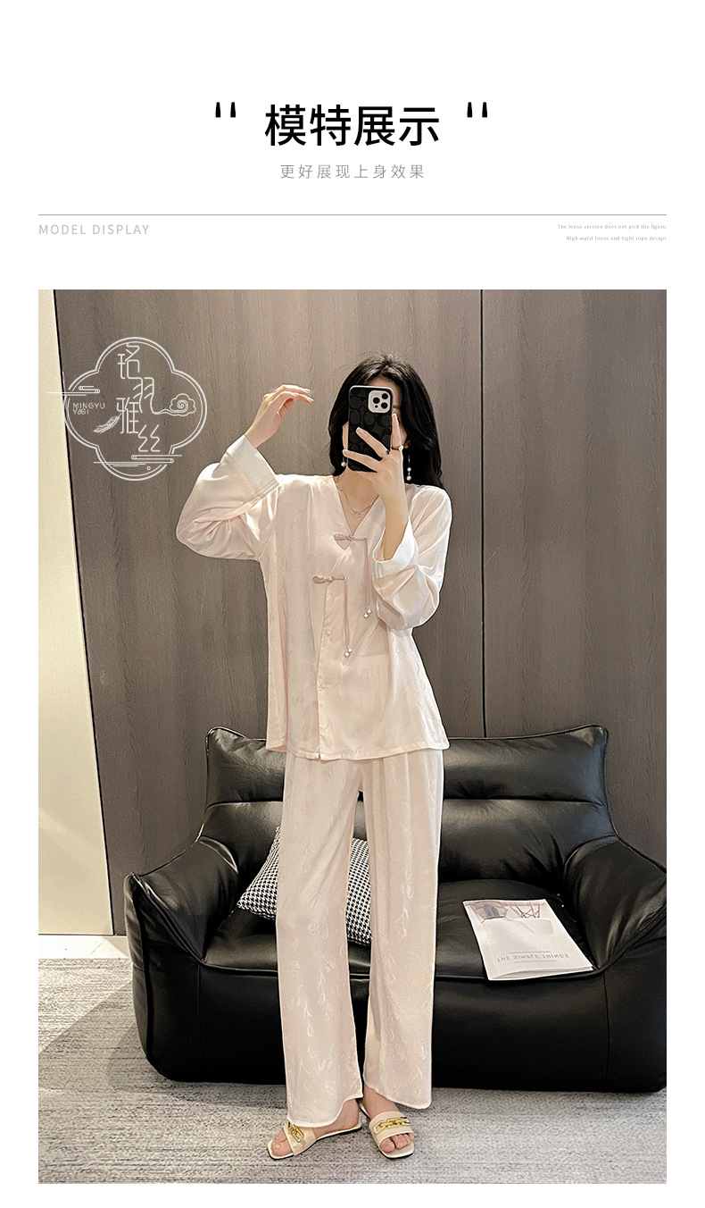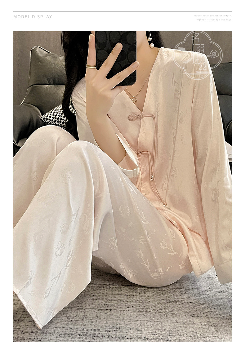 25 새로운 중국 잠옷 여성용 아이스 실크 봄과 가을 긴 소매 실크 세트 여름 하이 엔드 내셔널 스타일 홈 의류스토어 가기