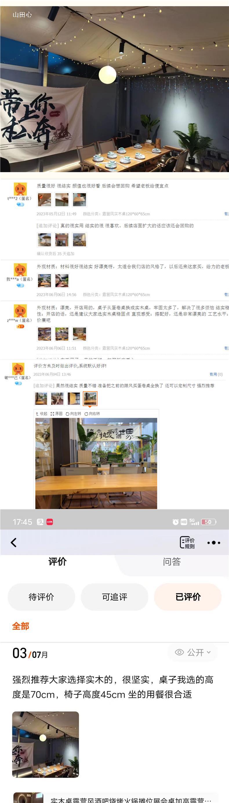 • 캠핑 스타일 원목 테이블 180*70*70cm