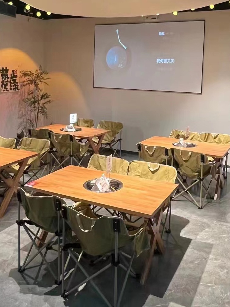 원목 테이블 캠핑 스타일 바 바베큐 전골 부스 전시 테이블 높이 캠핑 스타일 식탁