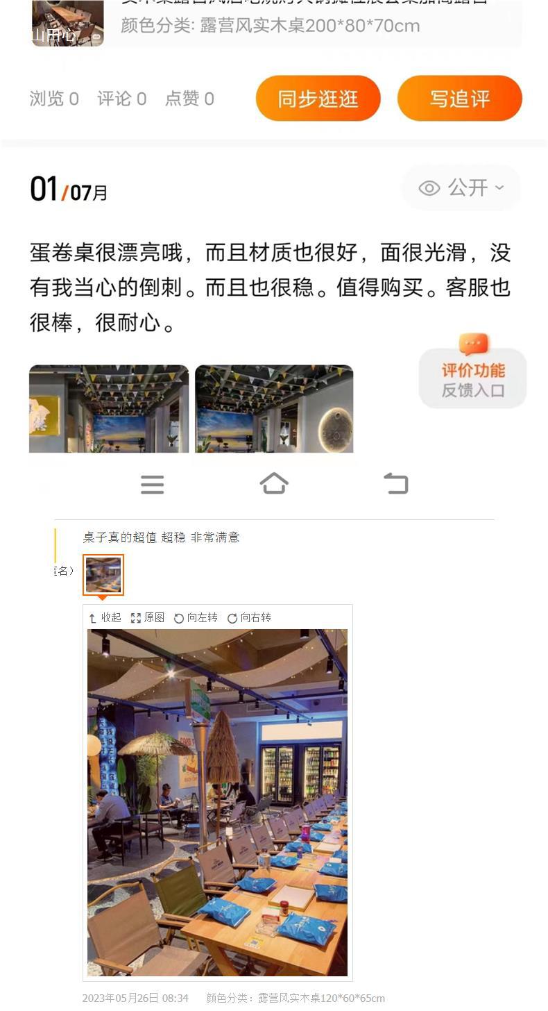 • 캠핑 스타일 원목 테이블 140*80*65cm