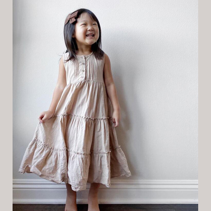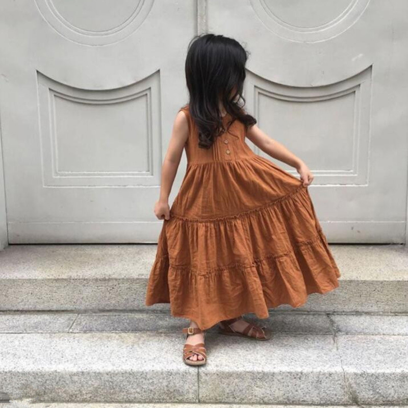재고! 유럽과 미국 소녀의 대마 코튼 휴가 스커트 여름 휴가 스타일 어린이 러플 롱 스커트 아기의 비치 스커트스토어 가기