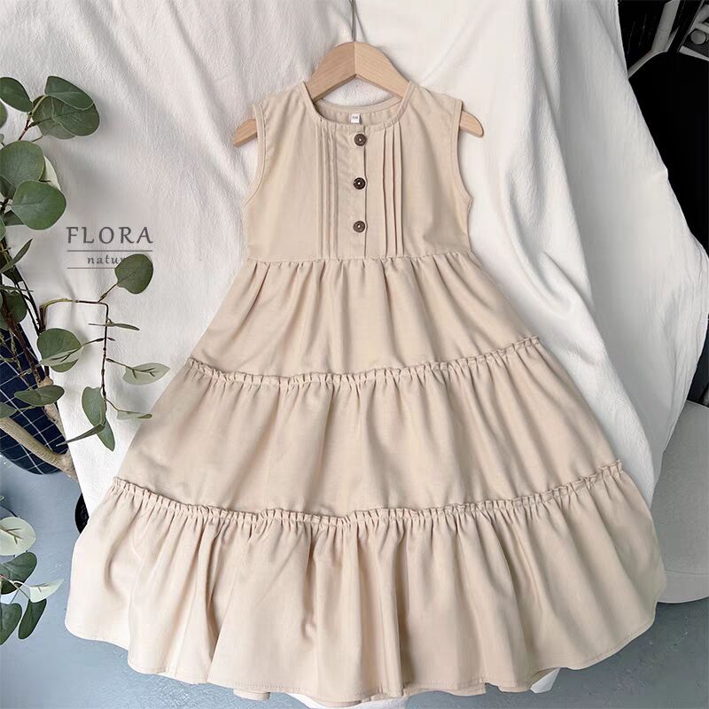 재고! 유럽과 미국 소녀의 대마 코튼 휴가 스커트 여름 휴가 스타일 어린이 러플 롱 스커트 아기의 비치 스커트