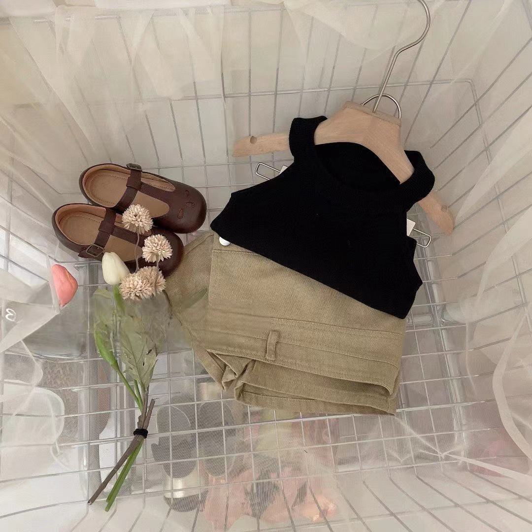 2024 년 새 어린이 여성 여름 세트 한국식 외국인 스타일 여성 아기의 여름 사이버 연예인 슬링 데님 치마스토어 가기