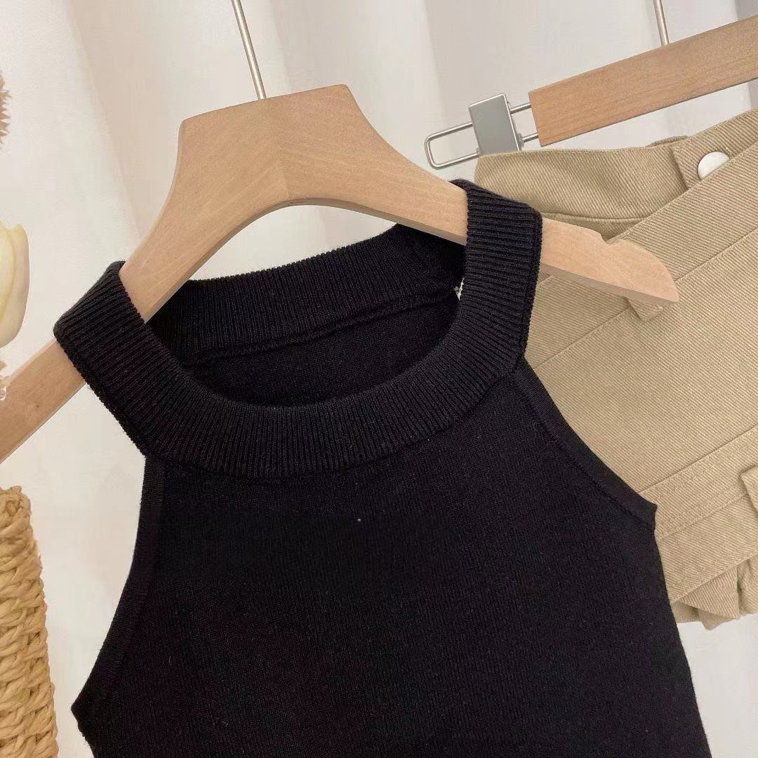 2024 년 새 어린이 여성 여름 세트 한국식 외국인 스타일 여성 아기의 여름 사이버 연예인 슬링 데님 치마