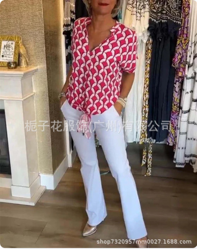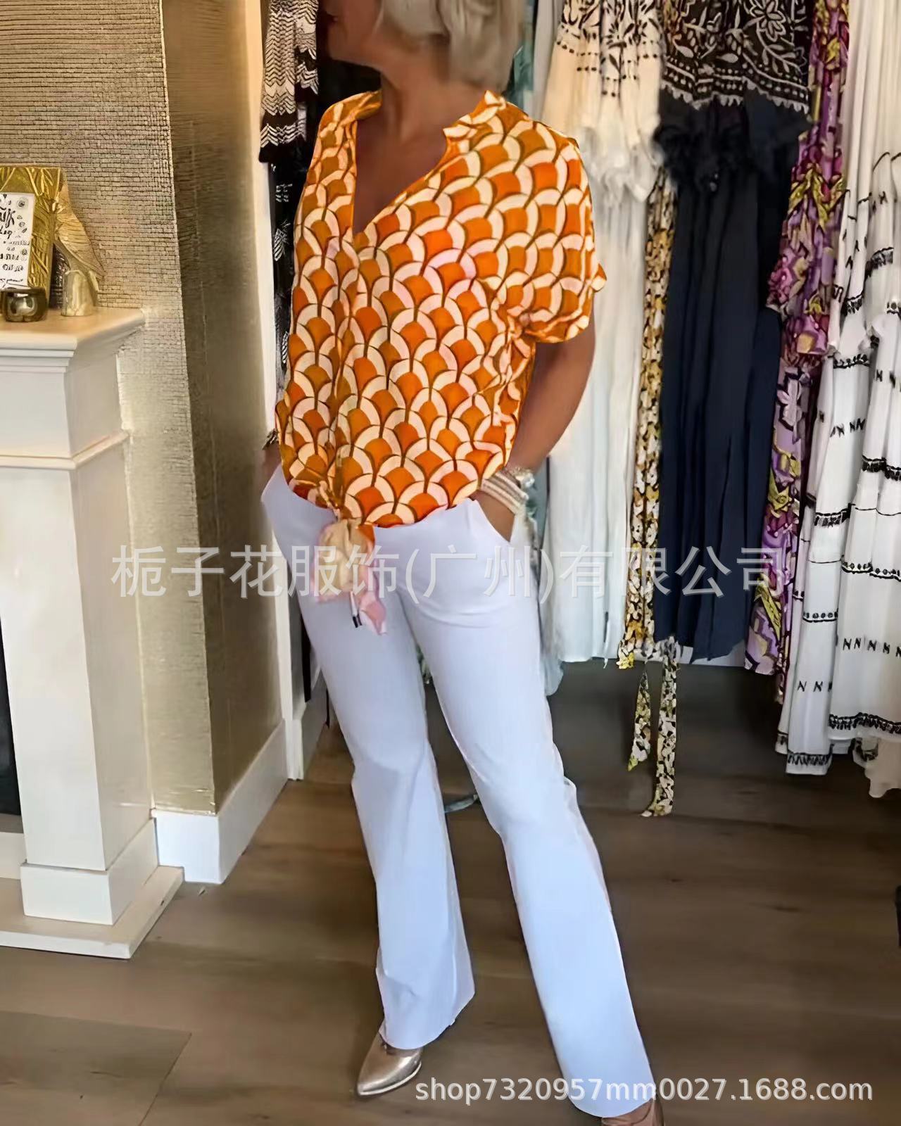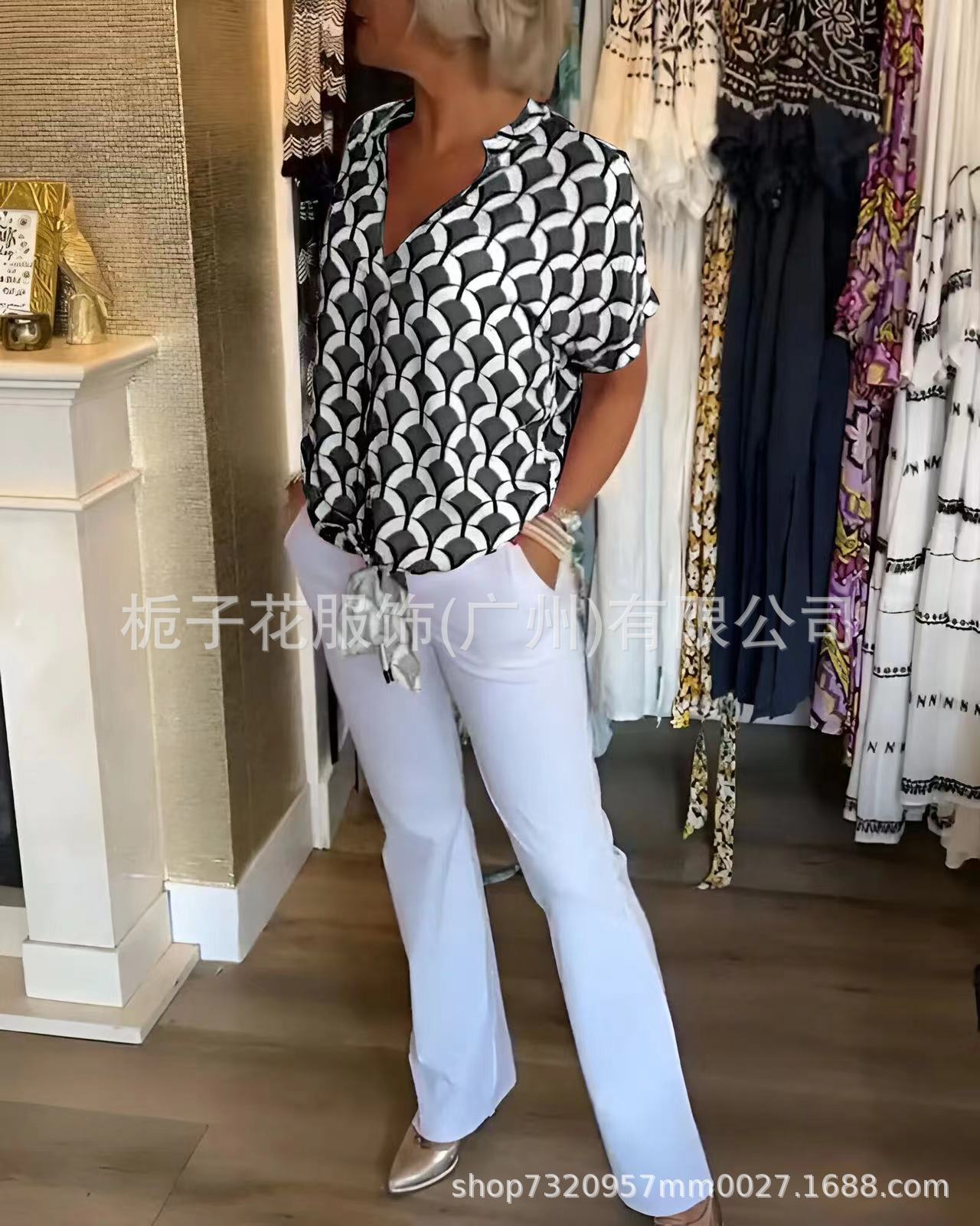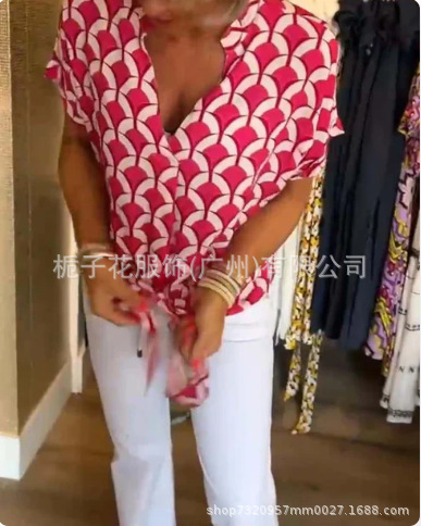 국경 간 유럽과 미국 여성 셔츠 아마존 독립 역 여성 대외 무역 여름 V 넥 패션 우아한 인쇄 셔츠