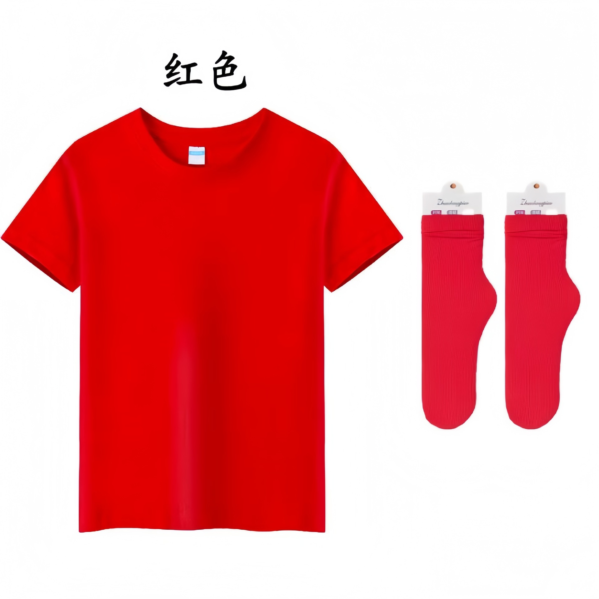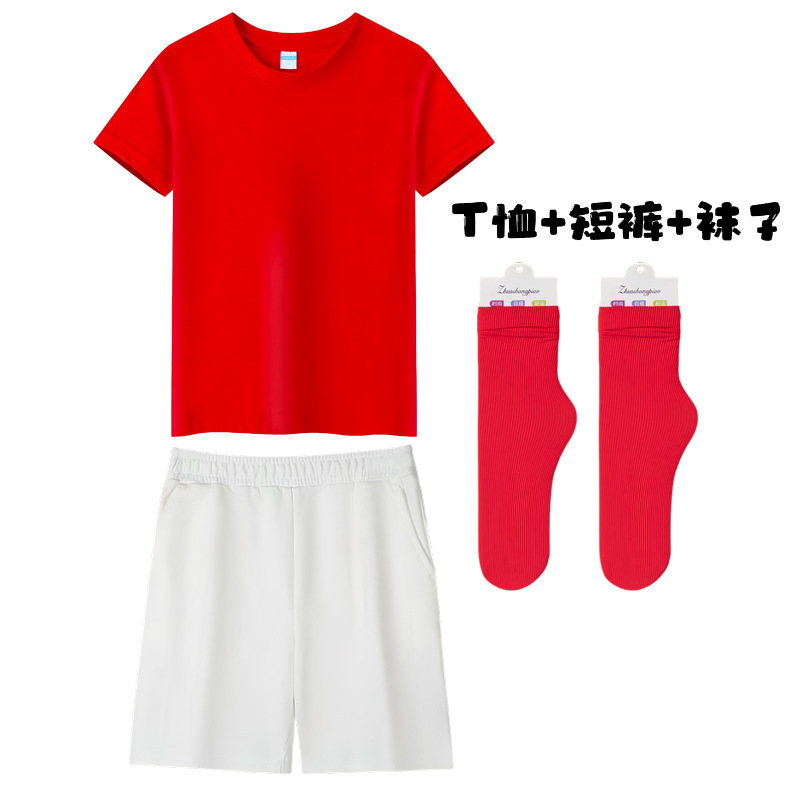 • 빨간 짧은 소매 반바지 양말