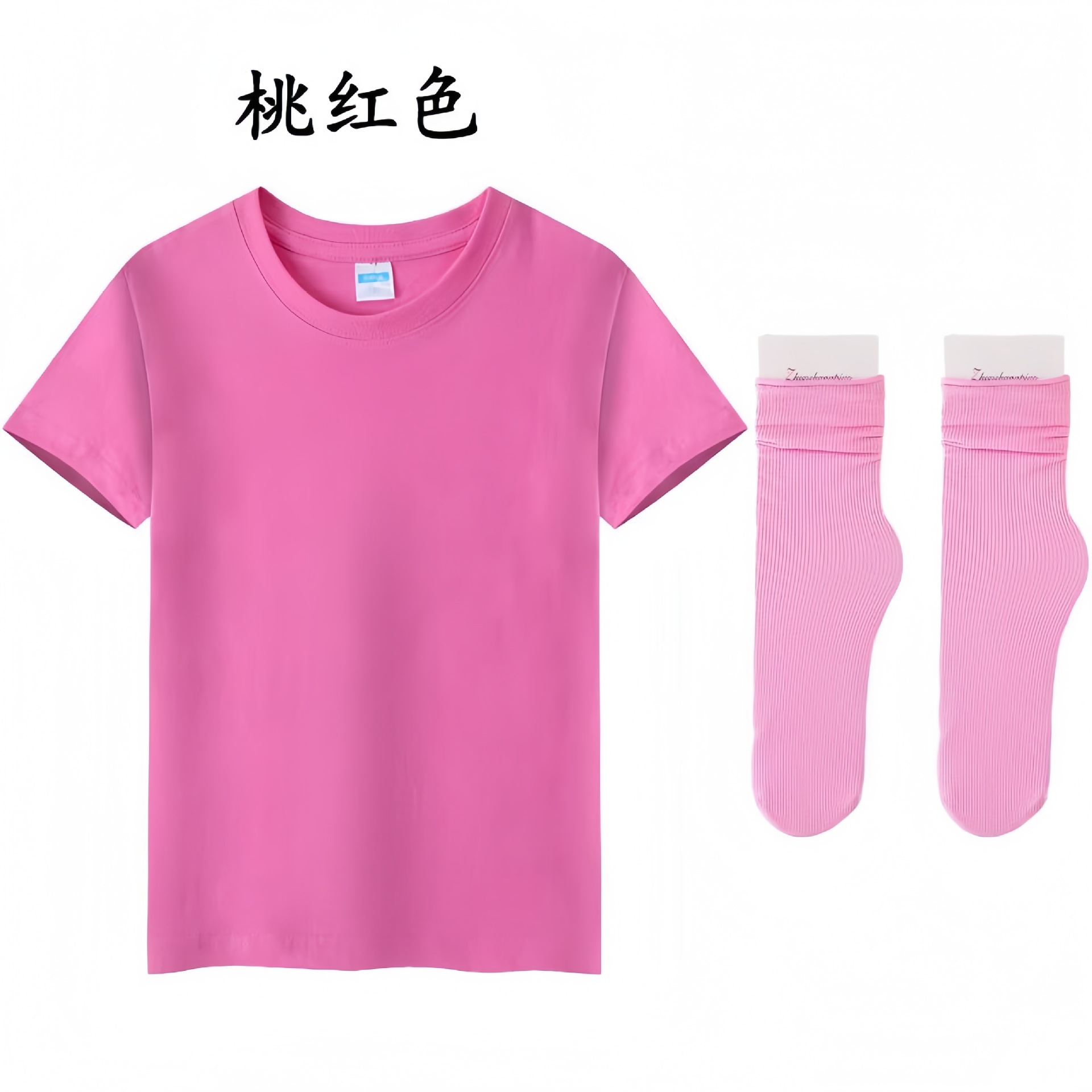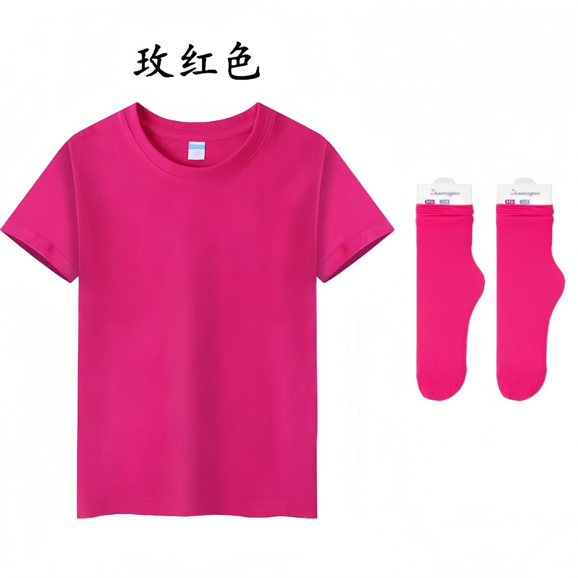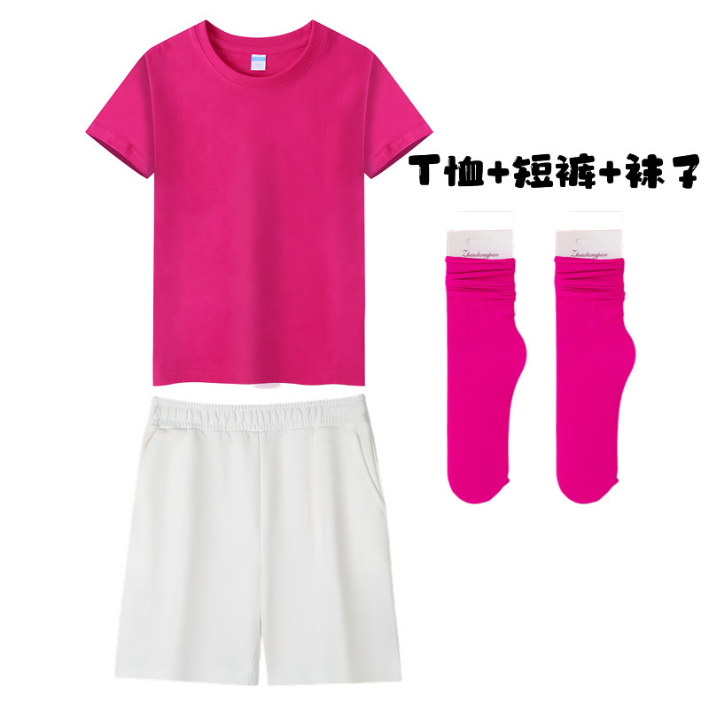 • 로즈 레드 짧은 소매 반바지 양말