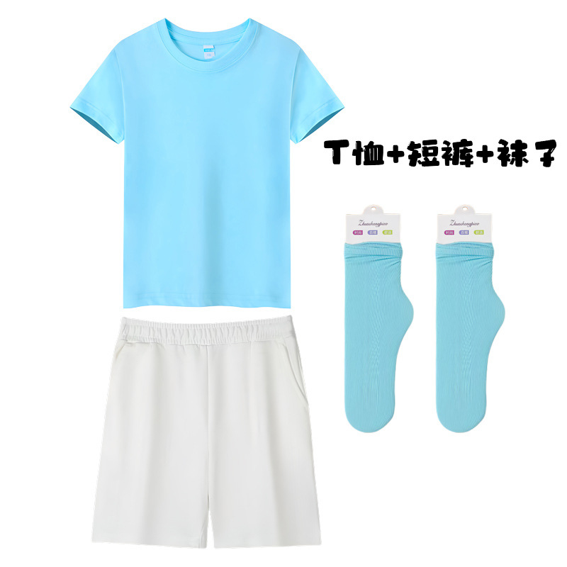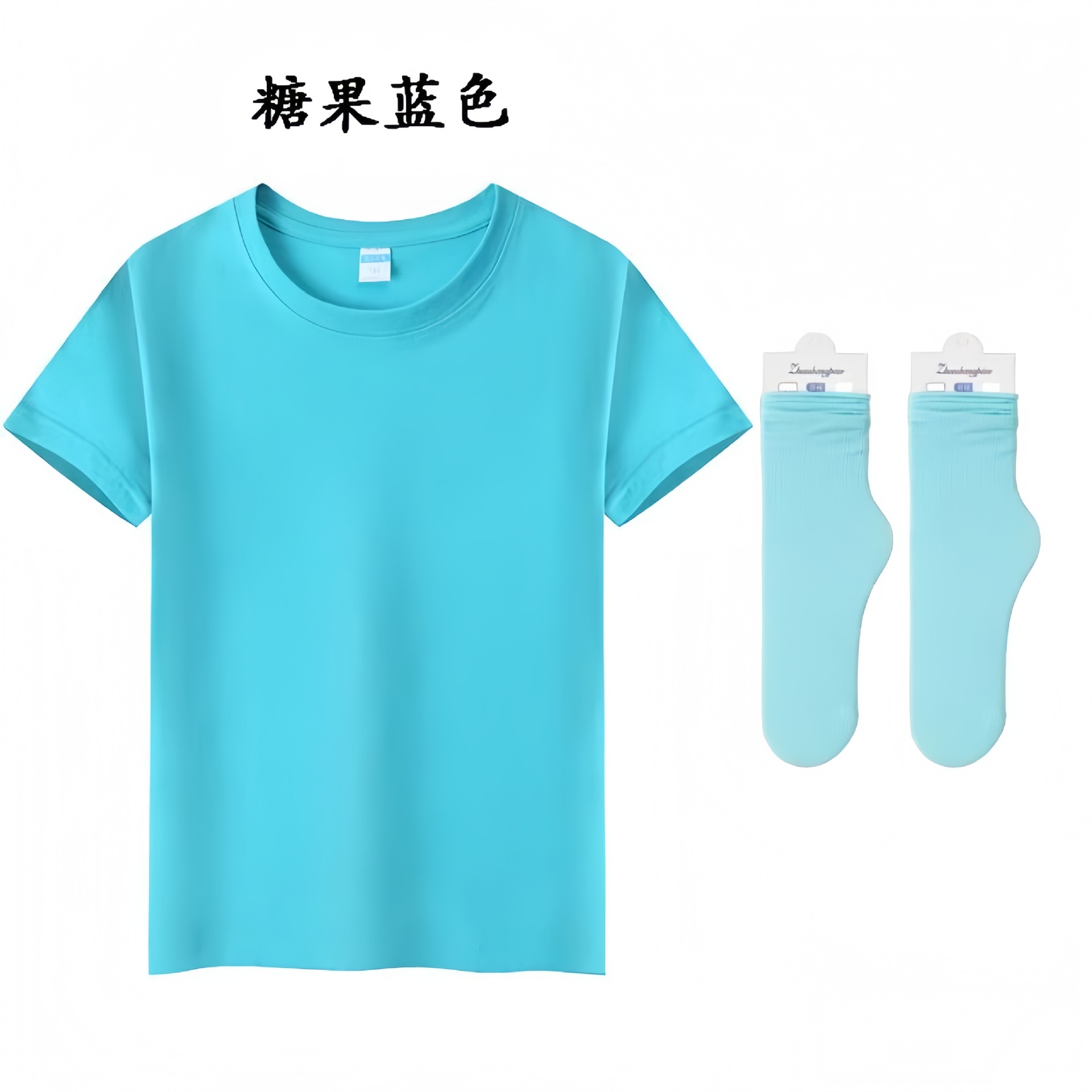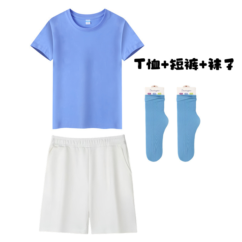 • 캔디 블루 짧은 소매 반바지 양말