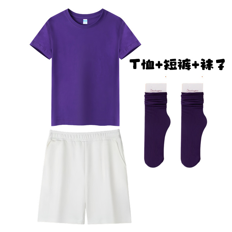 • 보라색 짧은 소매 반바지 양말