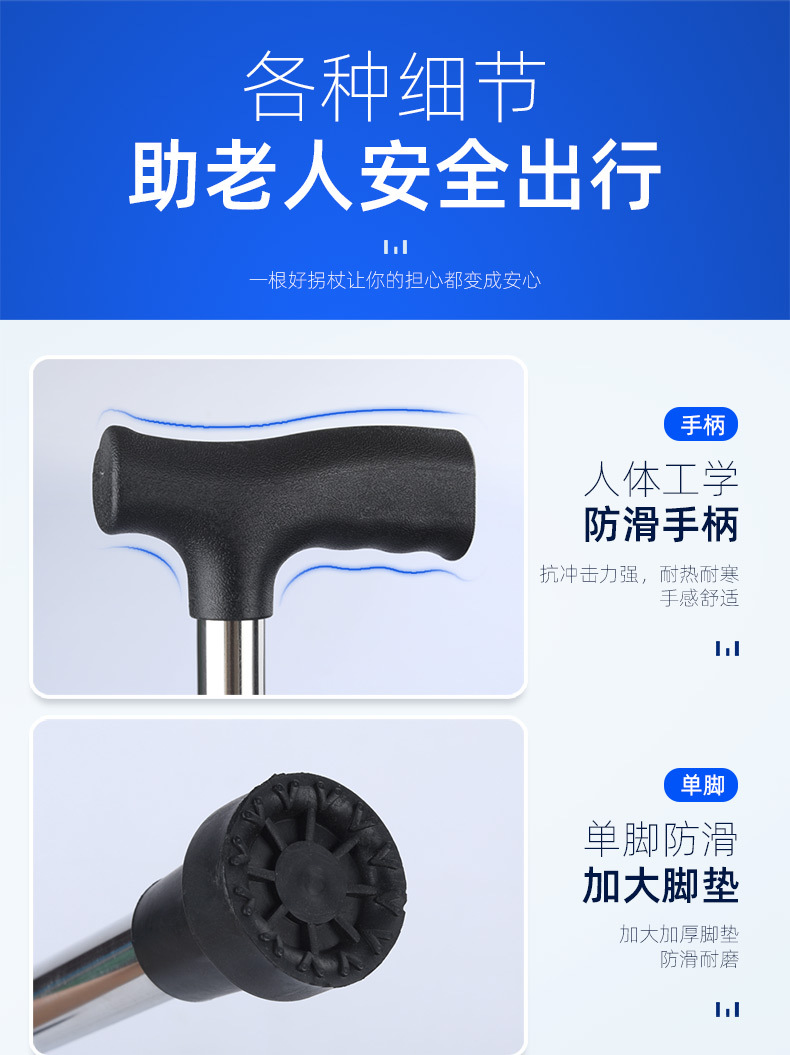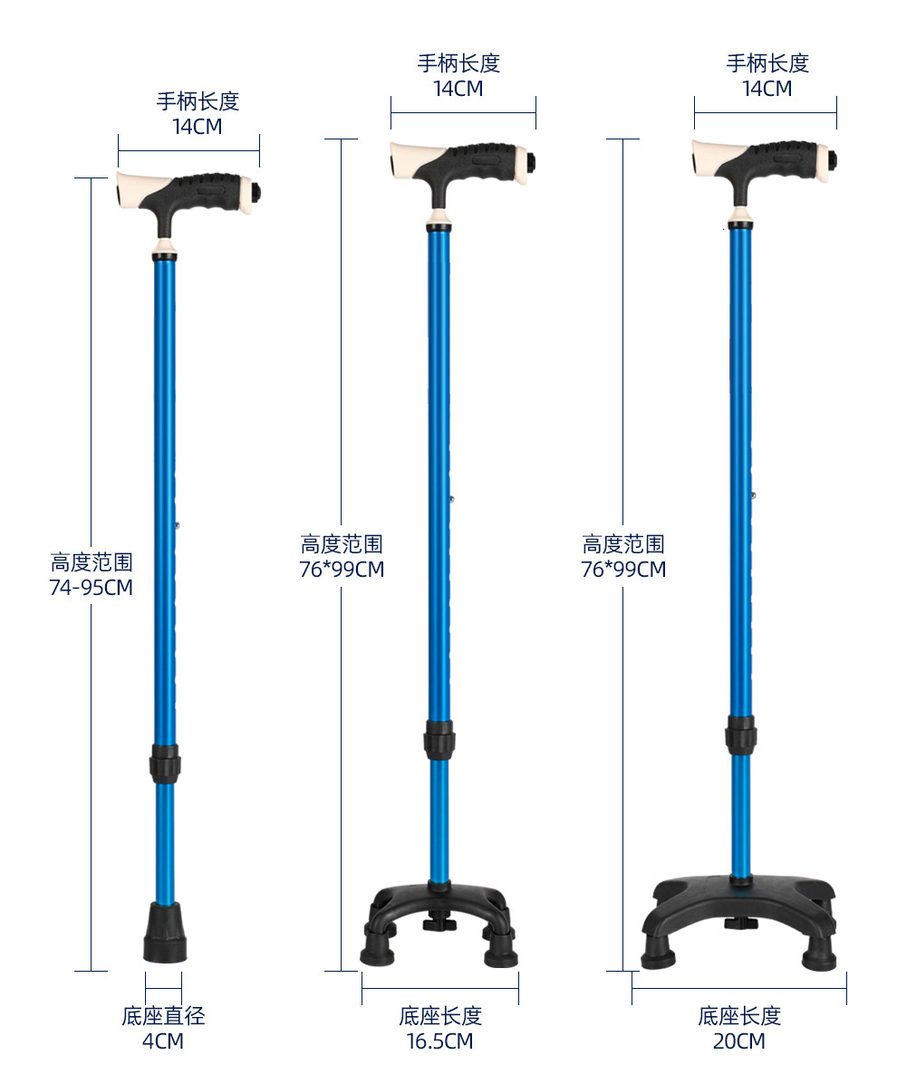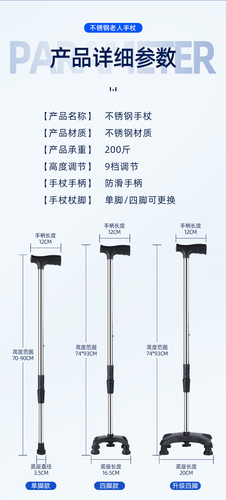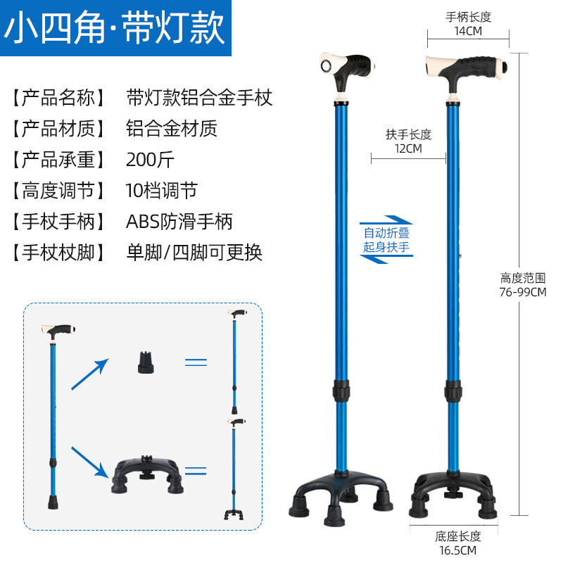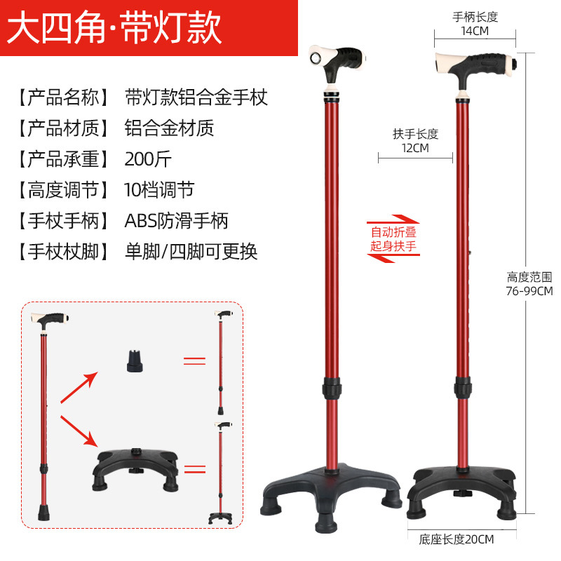 1 피트 조절 워킹 노인 트레킹을위한 스테인레스 스틸 4 코너 목발 조정 가능한 알루미늄 합금 지팡이