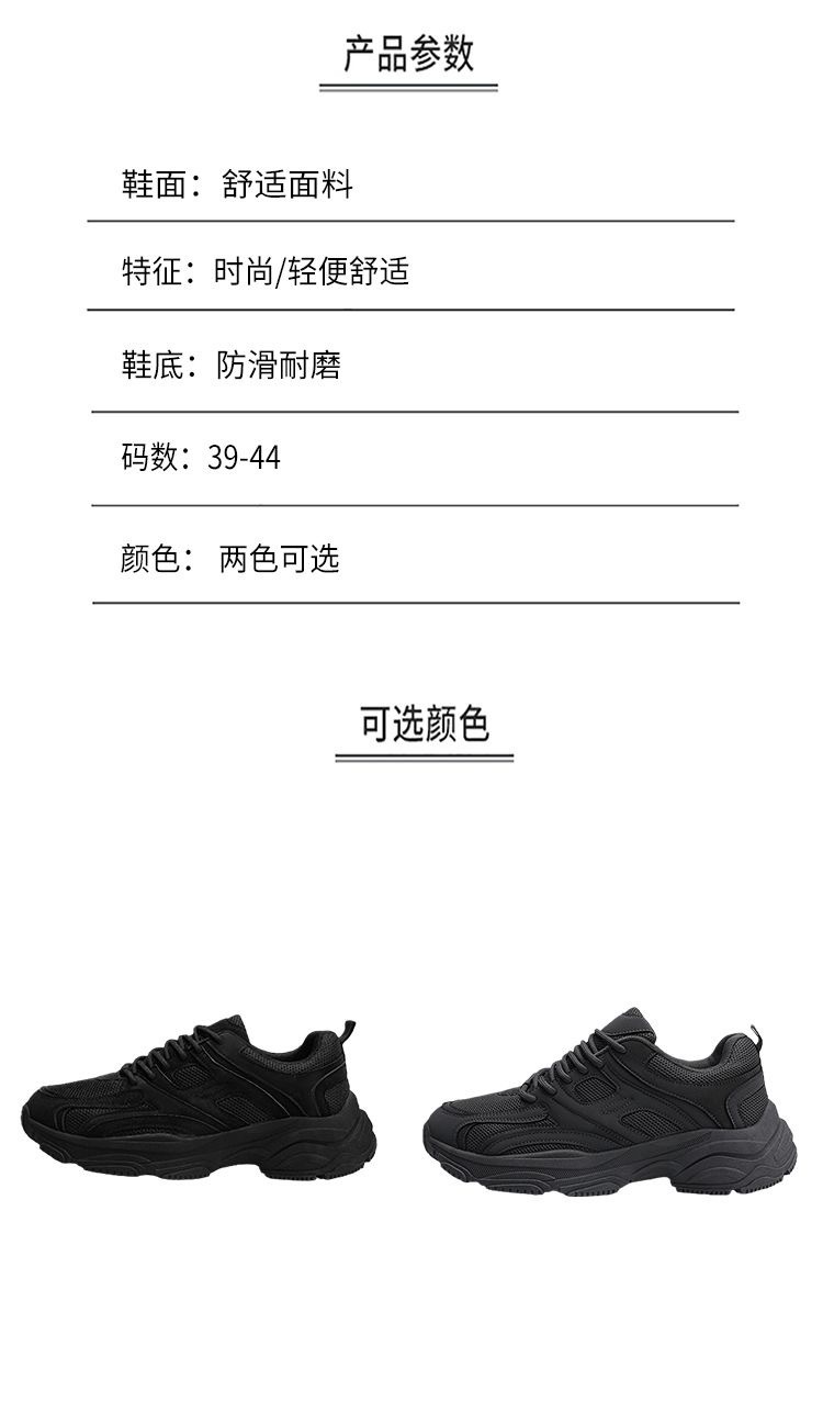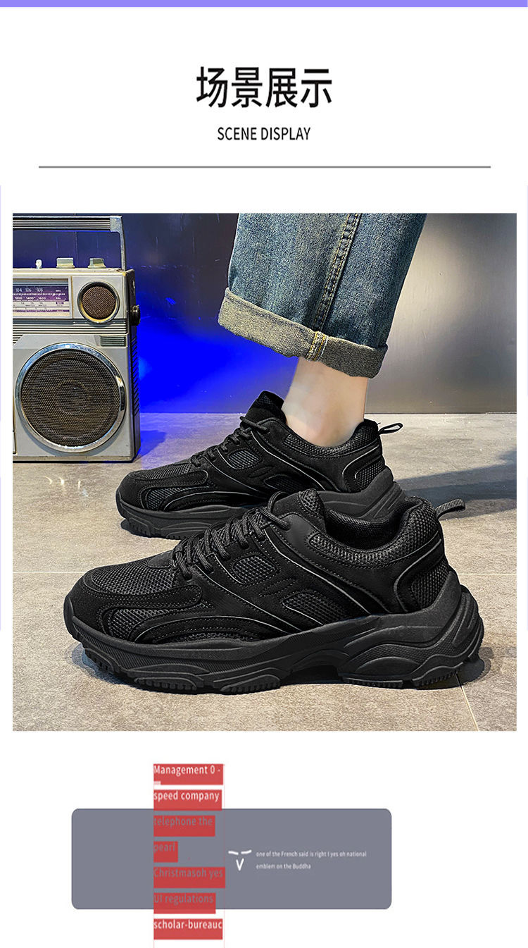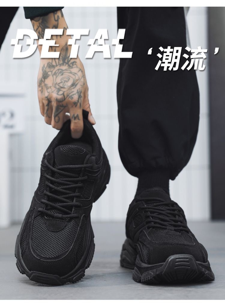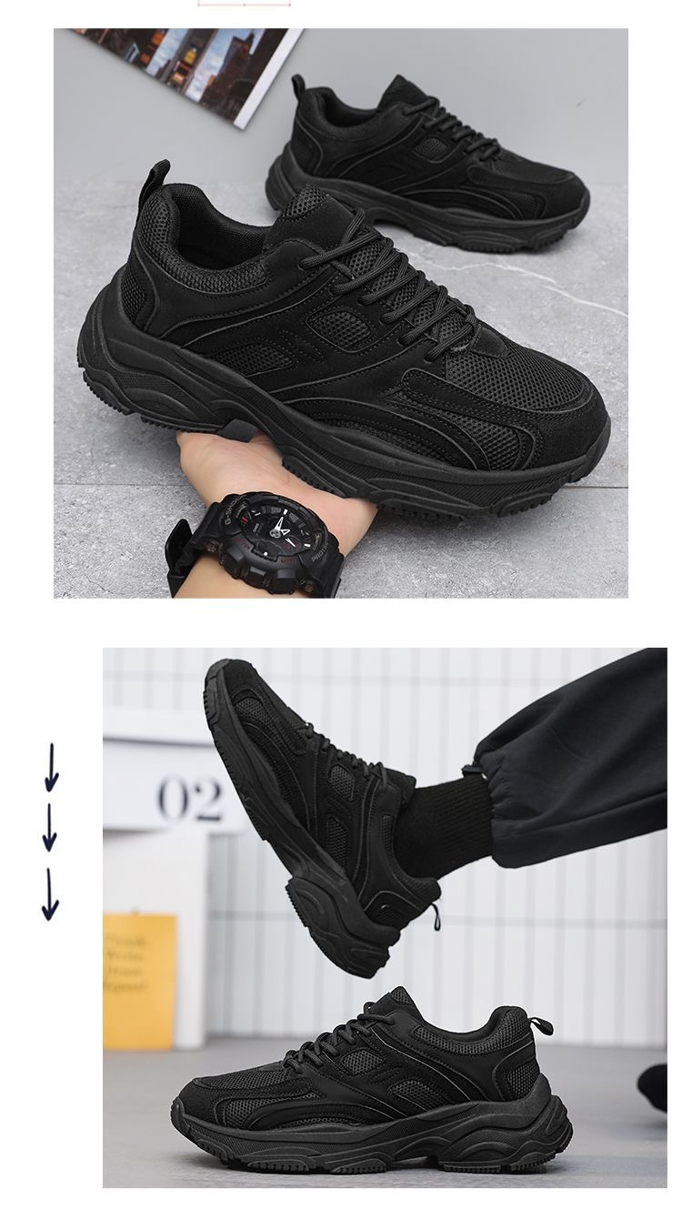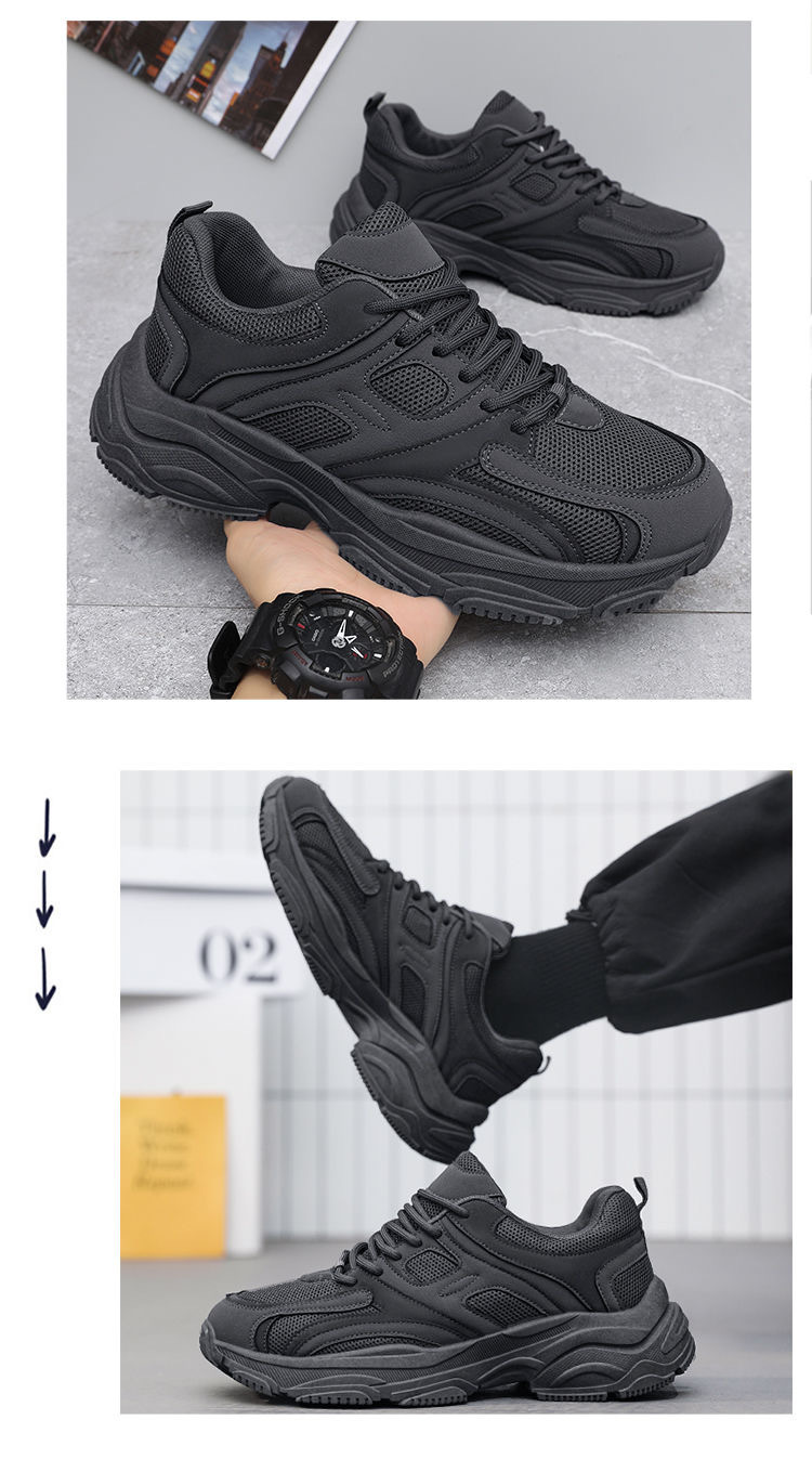 순수한 검은색 남성 신발 가을 2025 새로운 작업 보호 신발 미끄럼 방지 및 내마모성 남성 러닝 스포츠 아빠 신발 두꺼운 밑창스토어 가기