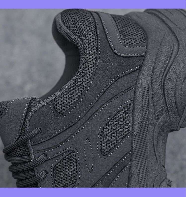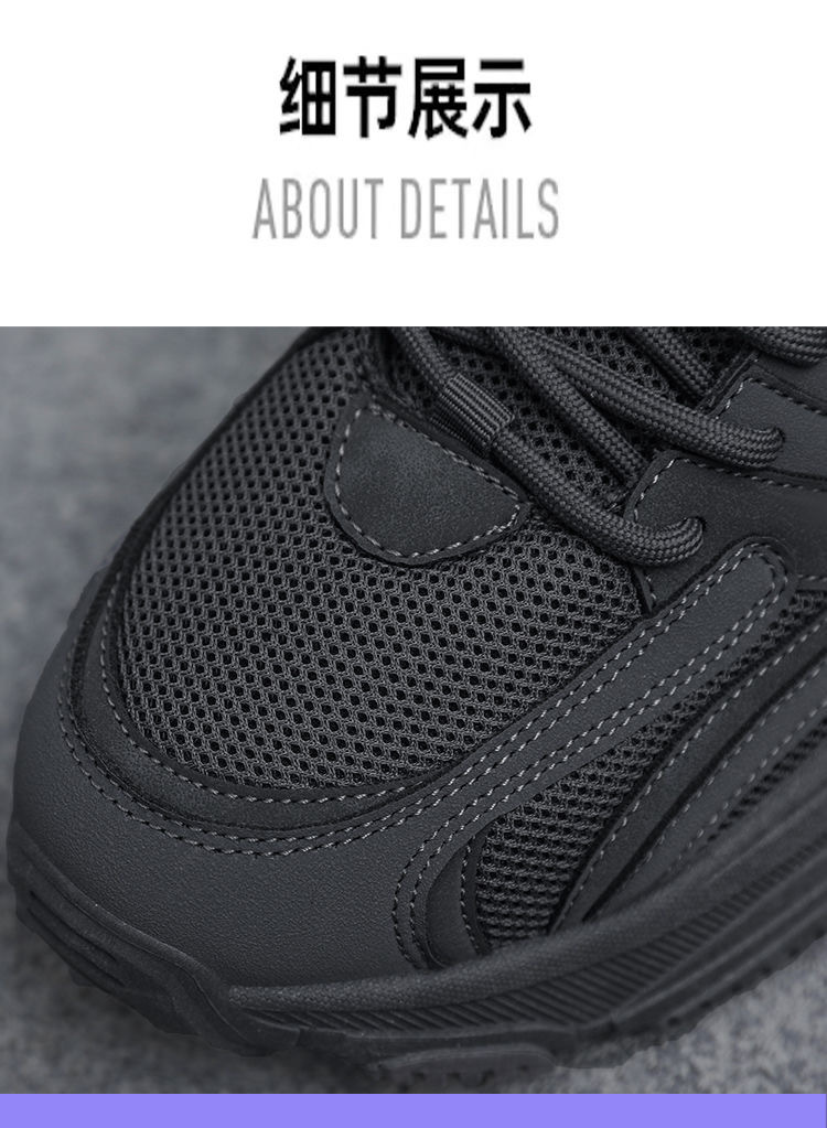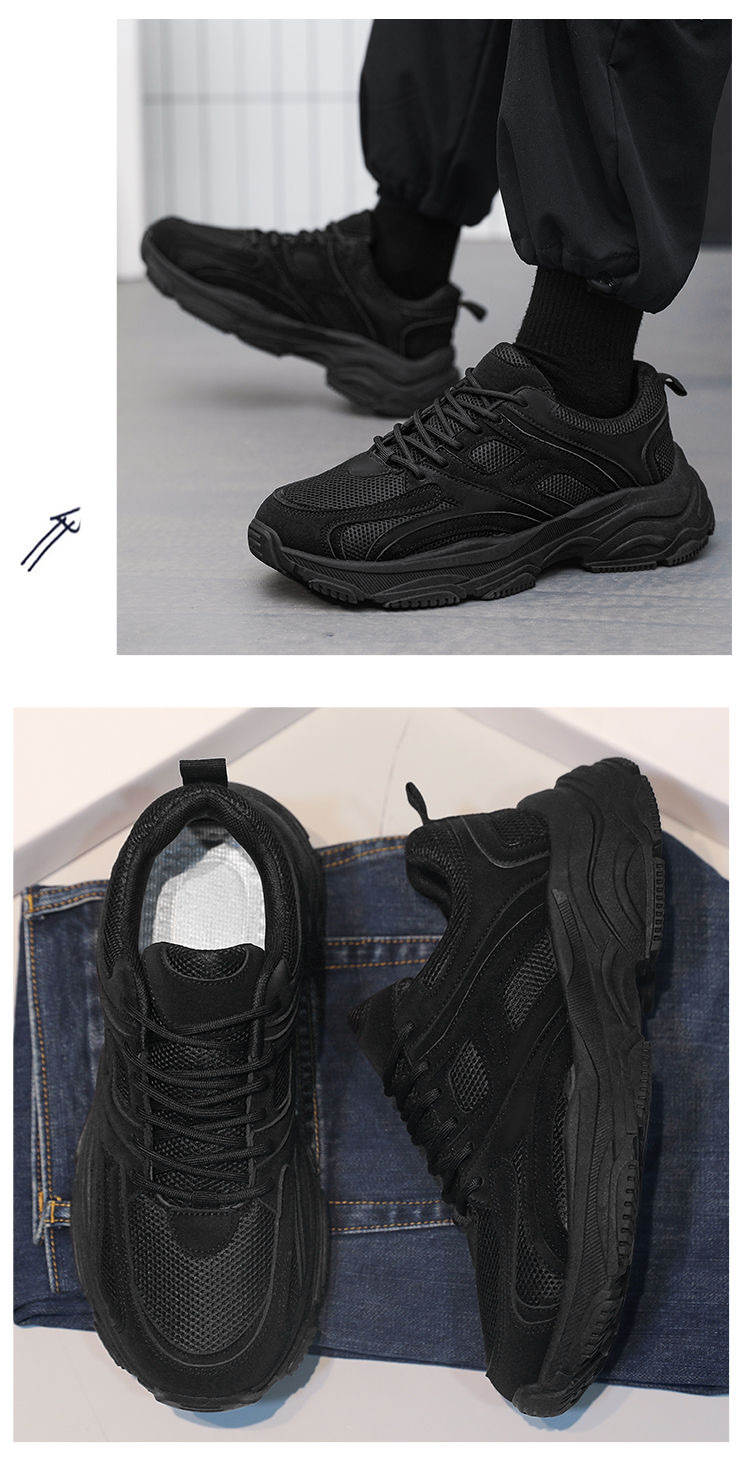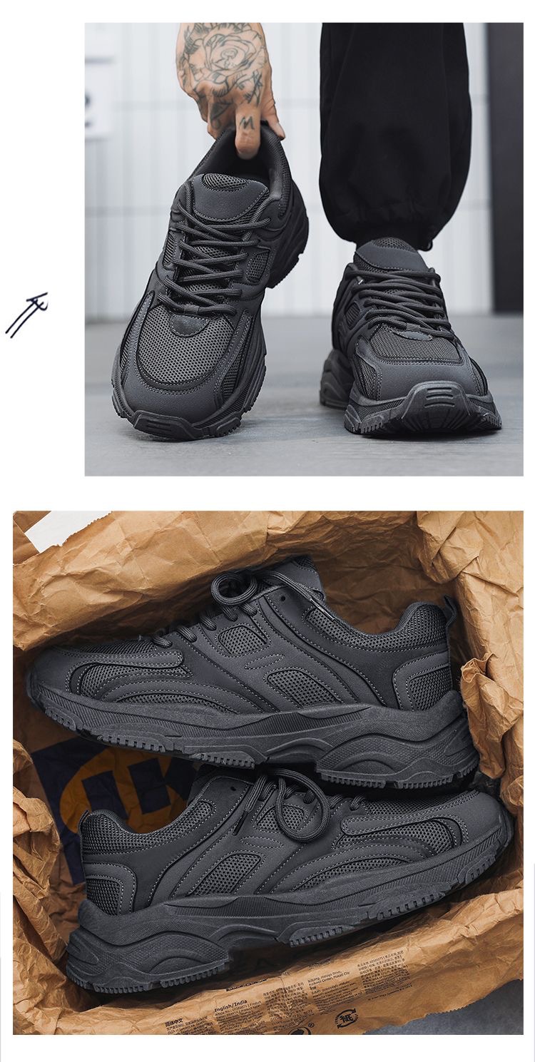 순수한 검은색 남성 신발 가을 2025 새로운 작업 보호 신발 미끄럼 방지 및 내마모성 남성 러닝 스포츠 아빠 신발 두꺼운 밑창