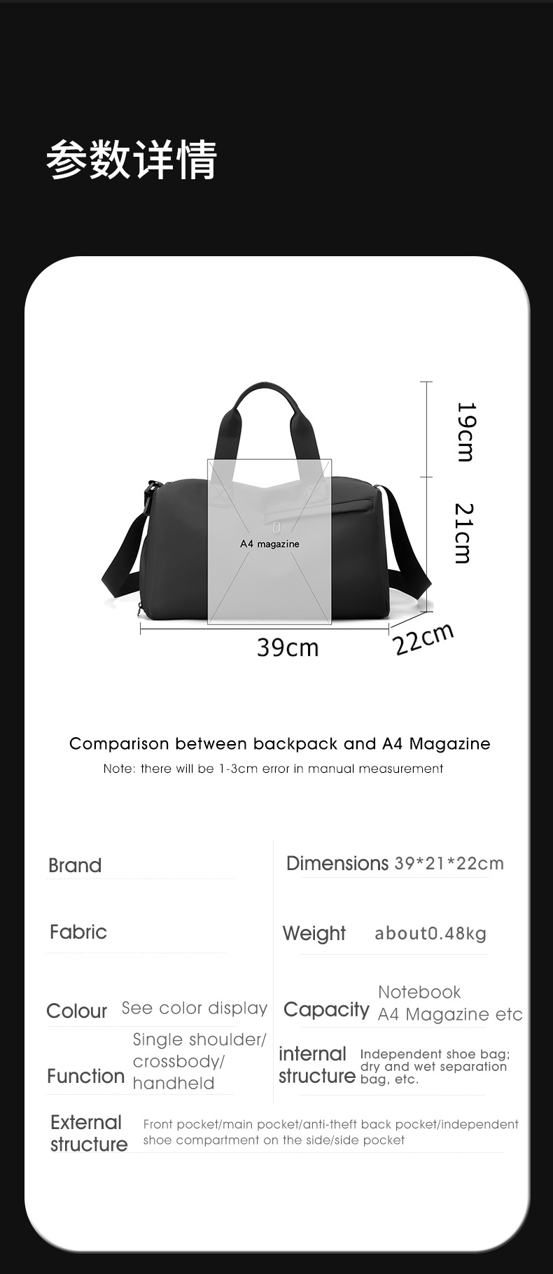 국경 간 아마존 필름 여행 가방 건습 분리 스포츠 여행 가방 피트니스 백팩 무역용 중성형스토어 가기