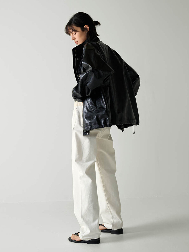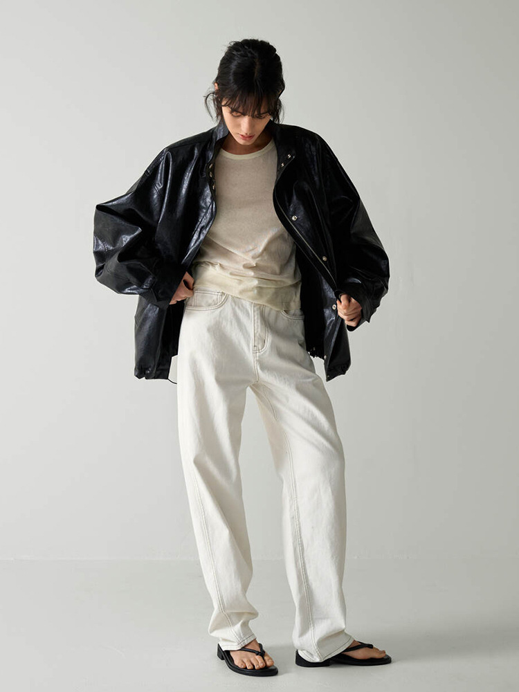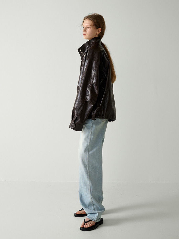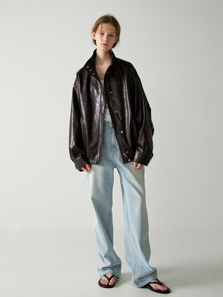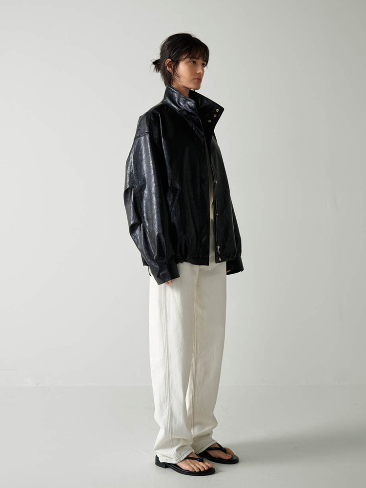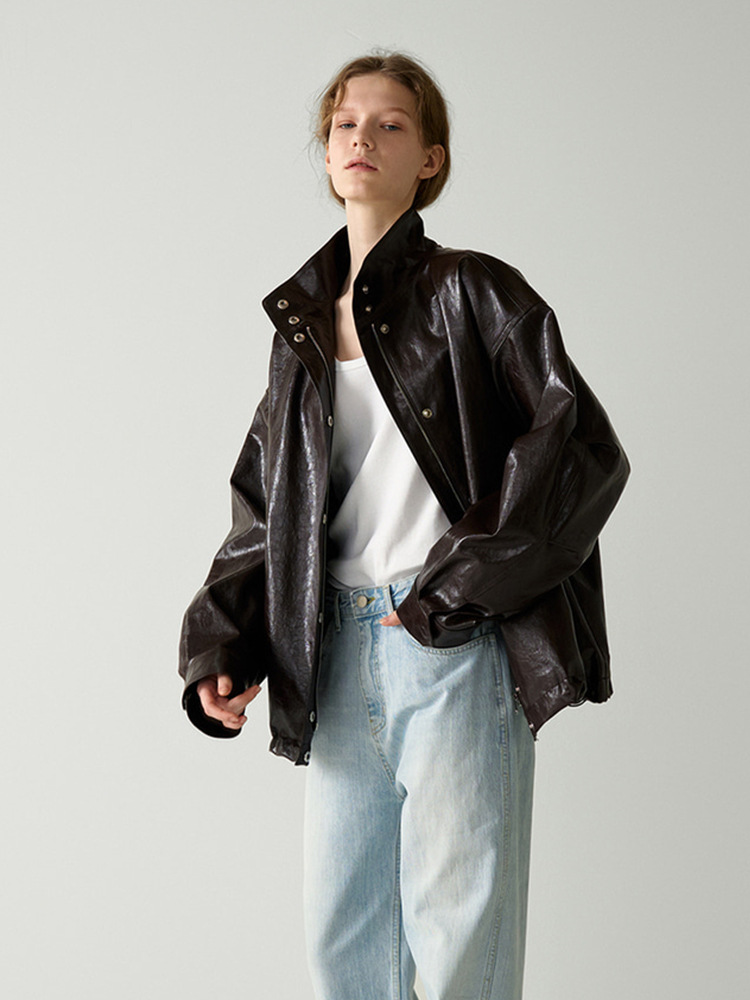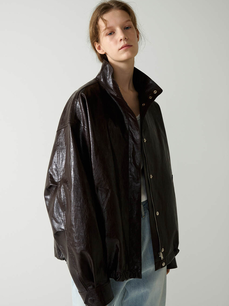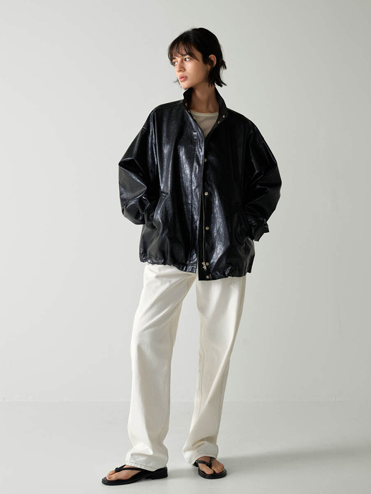 F*CADE P*TTERN 가죽 자켓 여성 봄, 여름, 가을 루즈 스탠드 칼라 오토바이 스타일 통근 자켓 탑스토어 가기