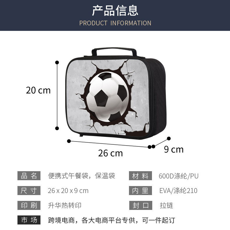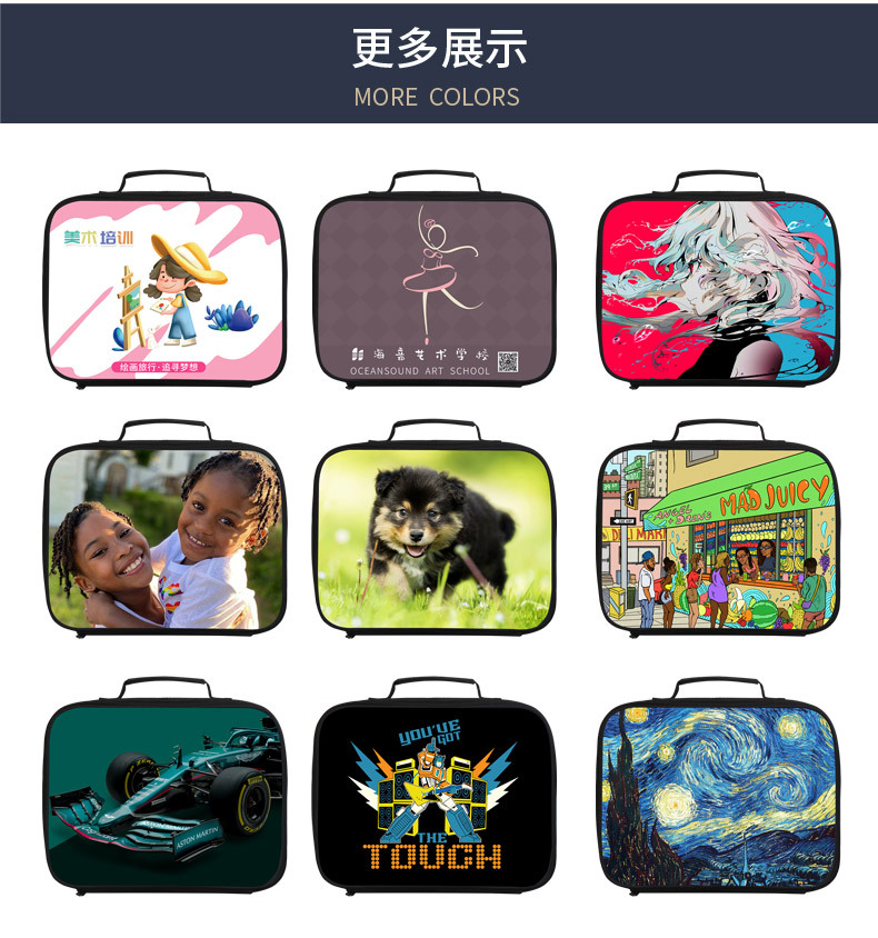 1.产品简介:这款横版餐包以简约时尚的造型脱颖而出,支持来图定制印花,无论是潮流元素、卡通形象还是品牌标识,都能为您精准呈现。加厚EVA材质赋予其卓越的保温保冷性能,让美食始终保持理想温度。丰富的包体色彩选择,可自由搭配各类图案,轻松适配通勤、野餐、健身等场景,深受各年龄段青睐。超大容量设计,满足多样收纳需求,跨境稳定货源,助力轻松拓展市场!