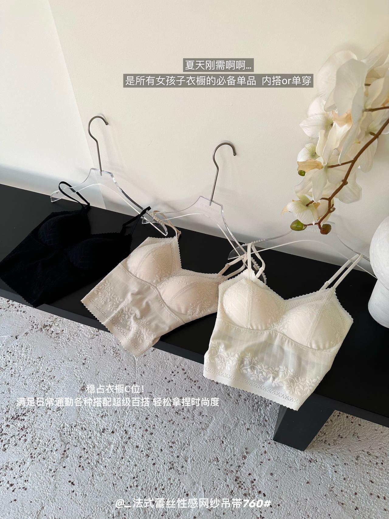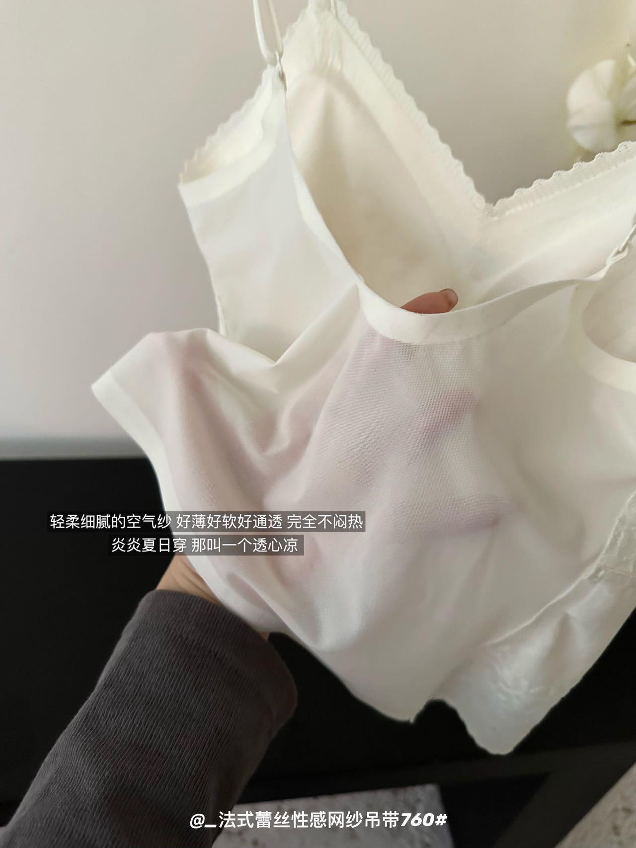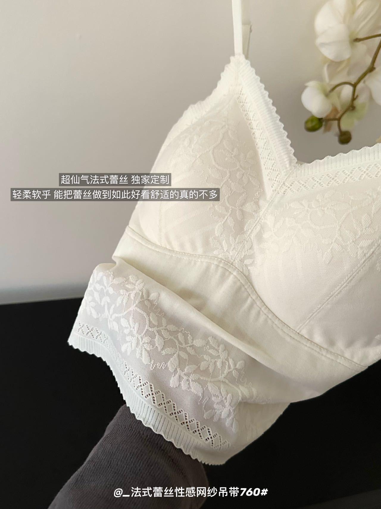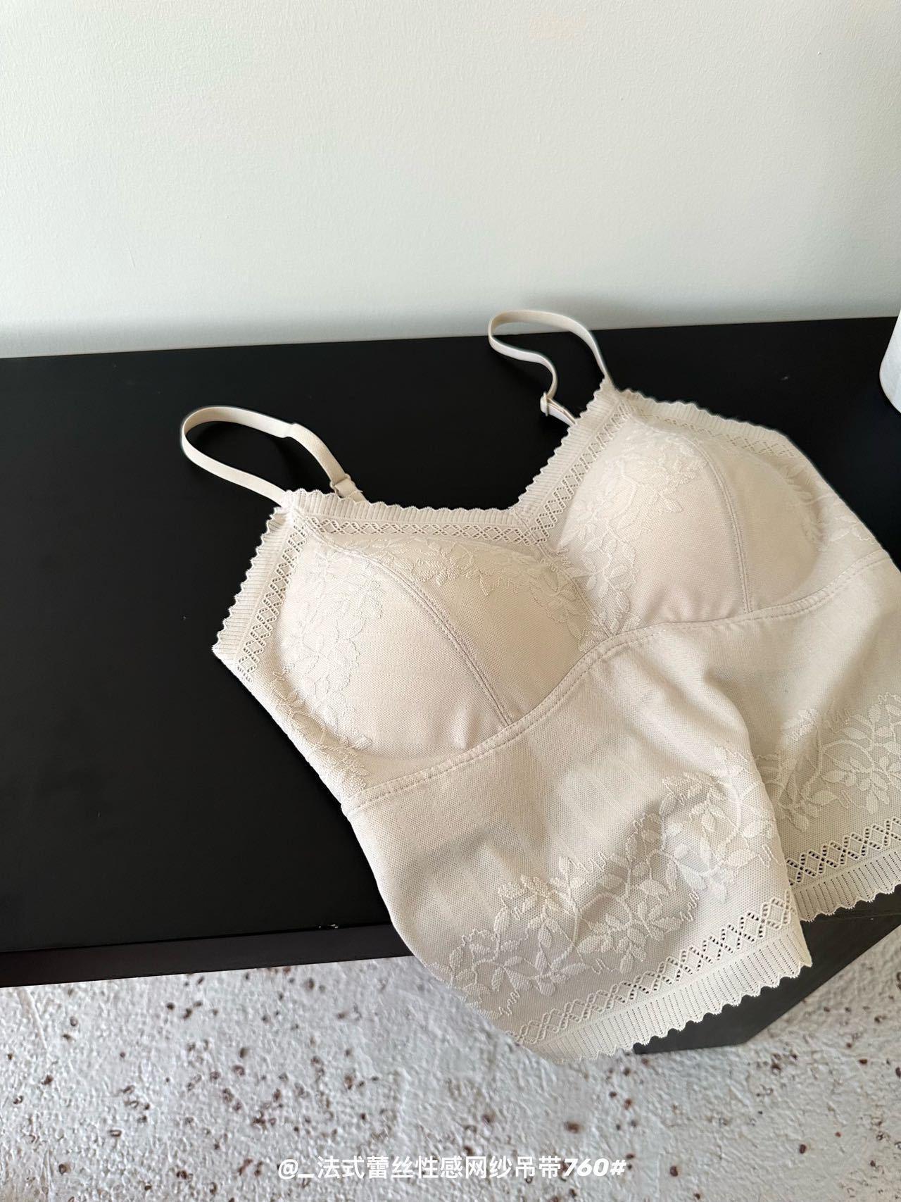 760 프렌치 스타일 레이스 여성용 작은 스트랩 메쉬 조끼 가슴 패드 얇은 통기성 편안한 핀핏 아름다운 여성용 등