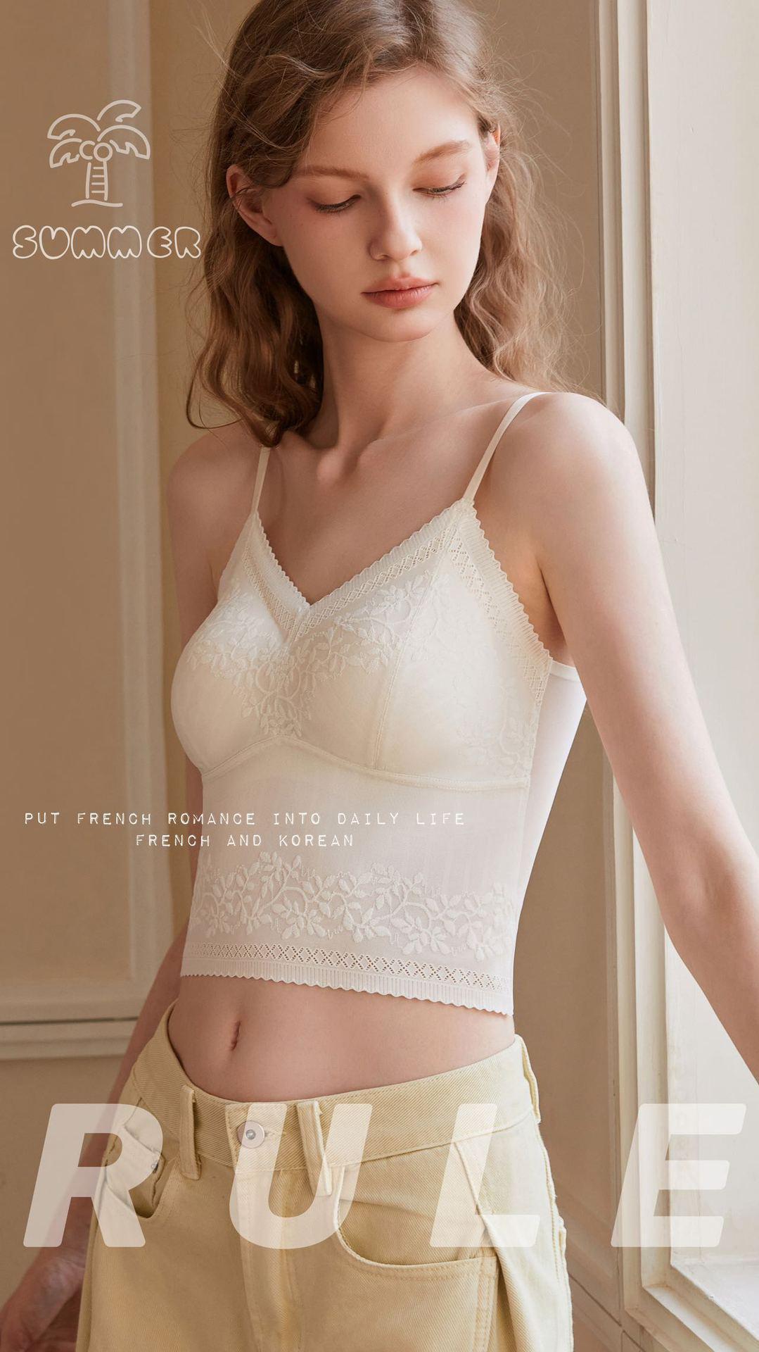 760 프렌치 스타일 레이스 여성용 작은 스트랩 메쉬 조끼 가슴 패드 얇은 통기성 편안한 핀핏 아름다운 여성용 등스토어 가기