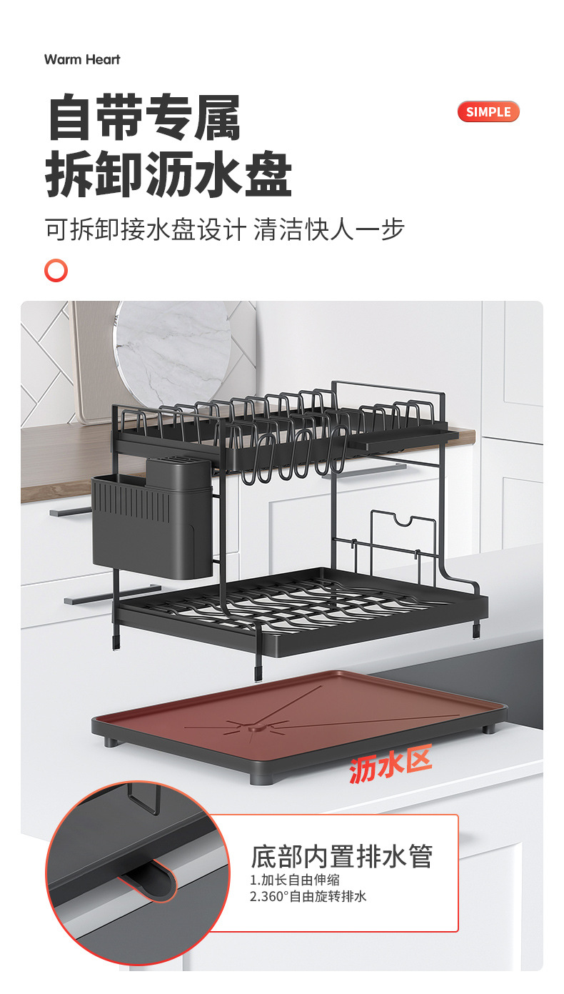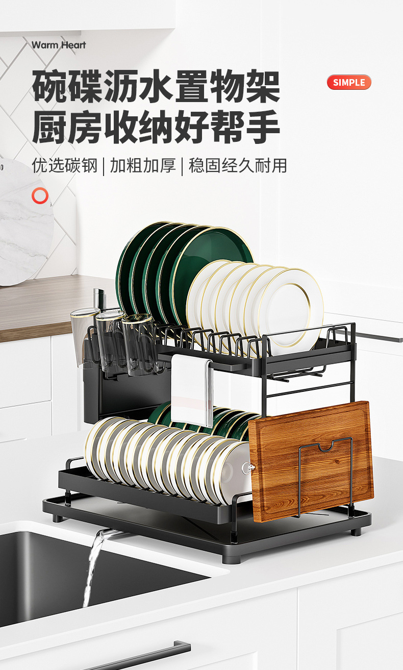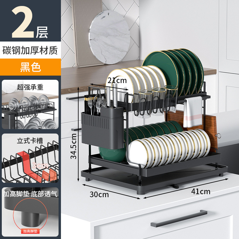 주방 가정용 접시 랙 카운터 탑 스토리지 랙 분리 가능한 드레인 랙 더블 레이어 다기능 접시 랙스토어 가기