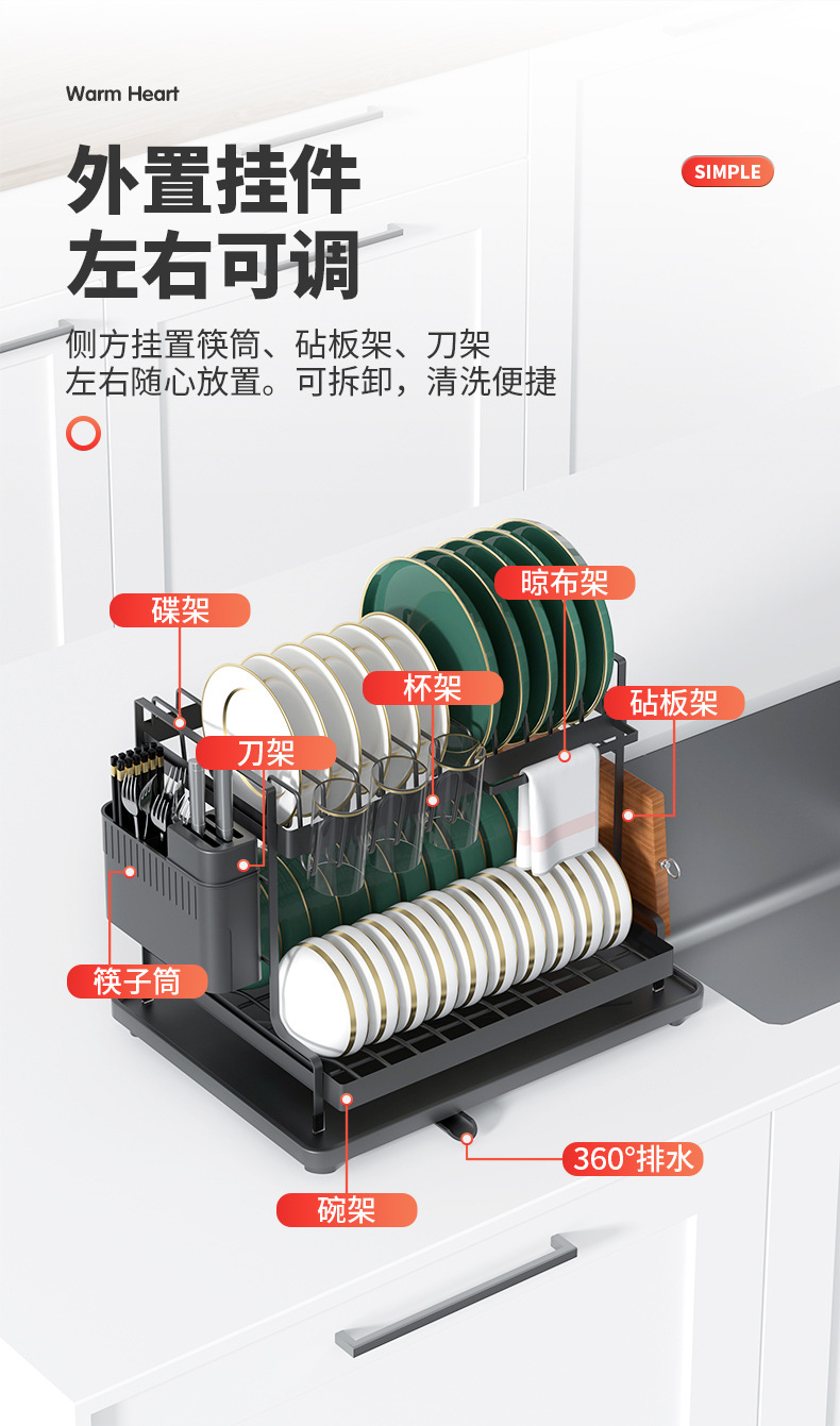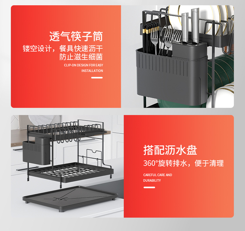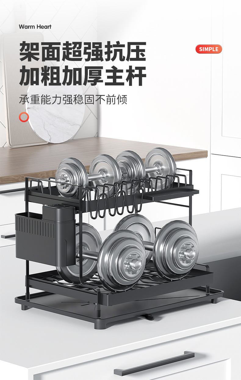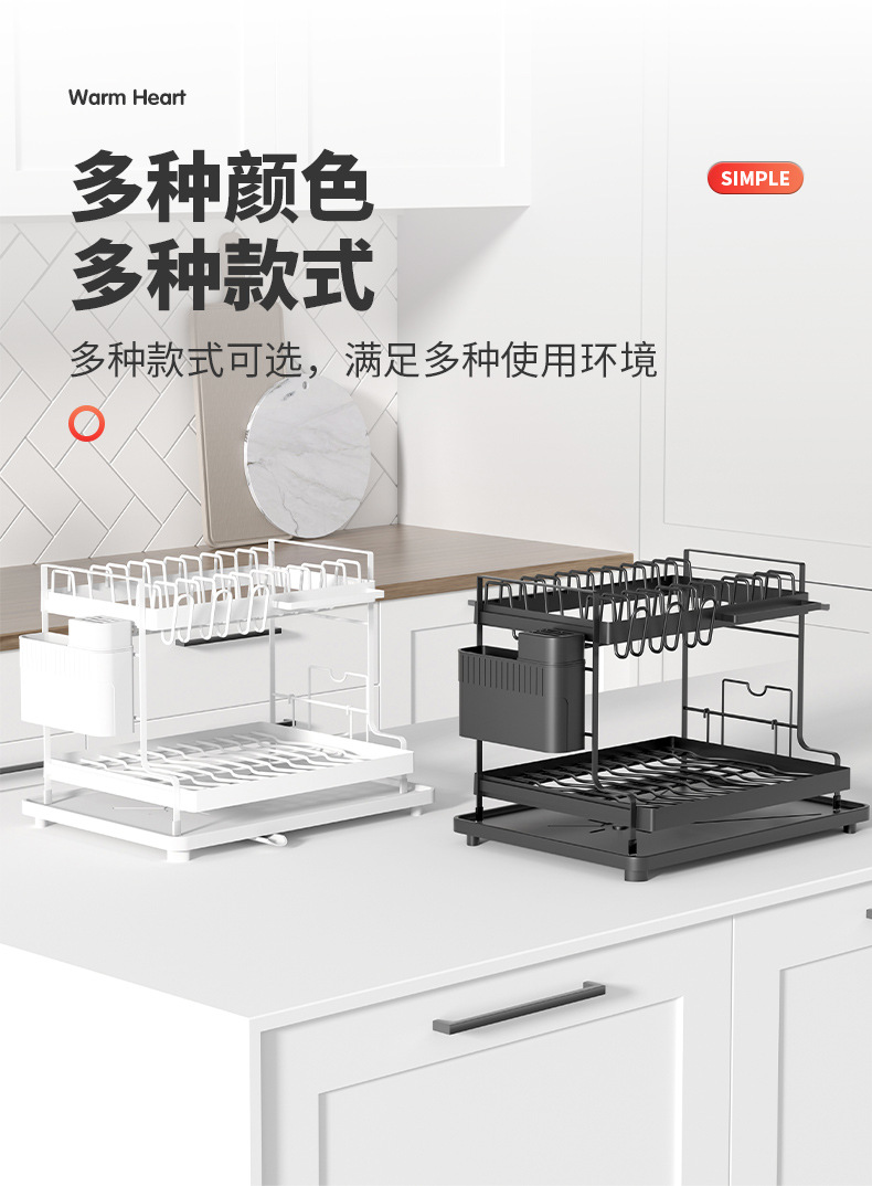 주방 가정용 접시 랙 카운터 탑 스토리지 랙 분리 가능한 드레인 랙 더블 레이어 다기능 접시 랙스토어 가기