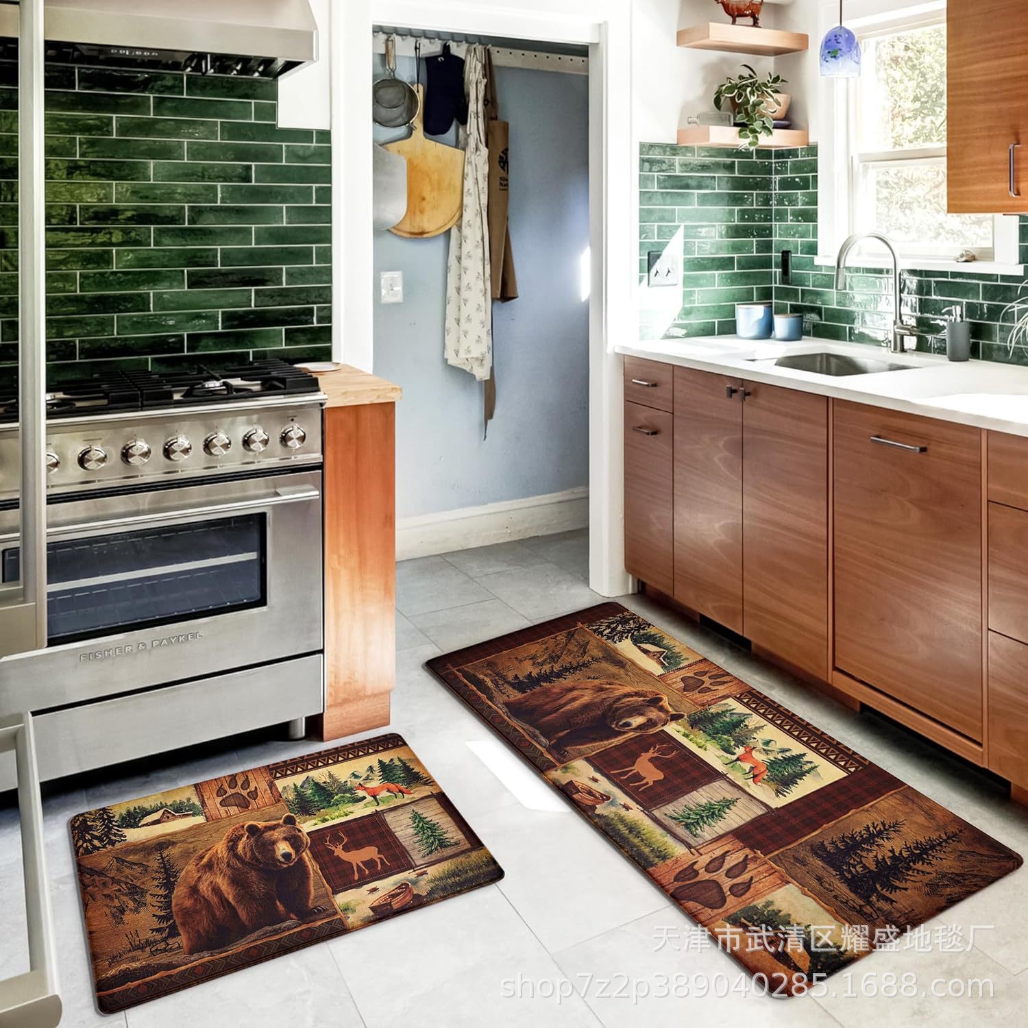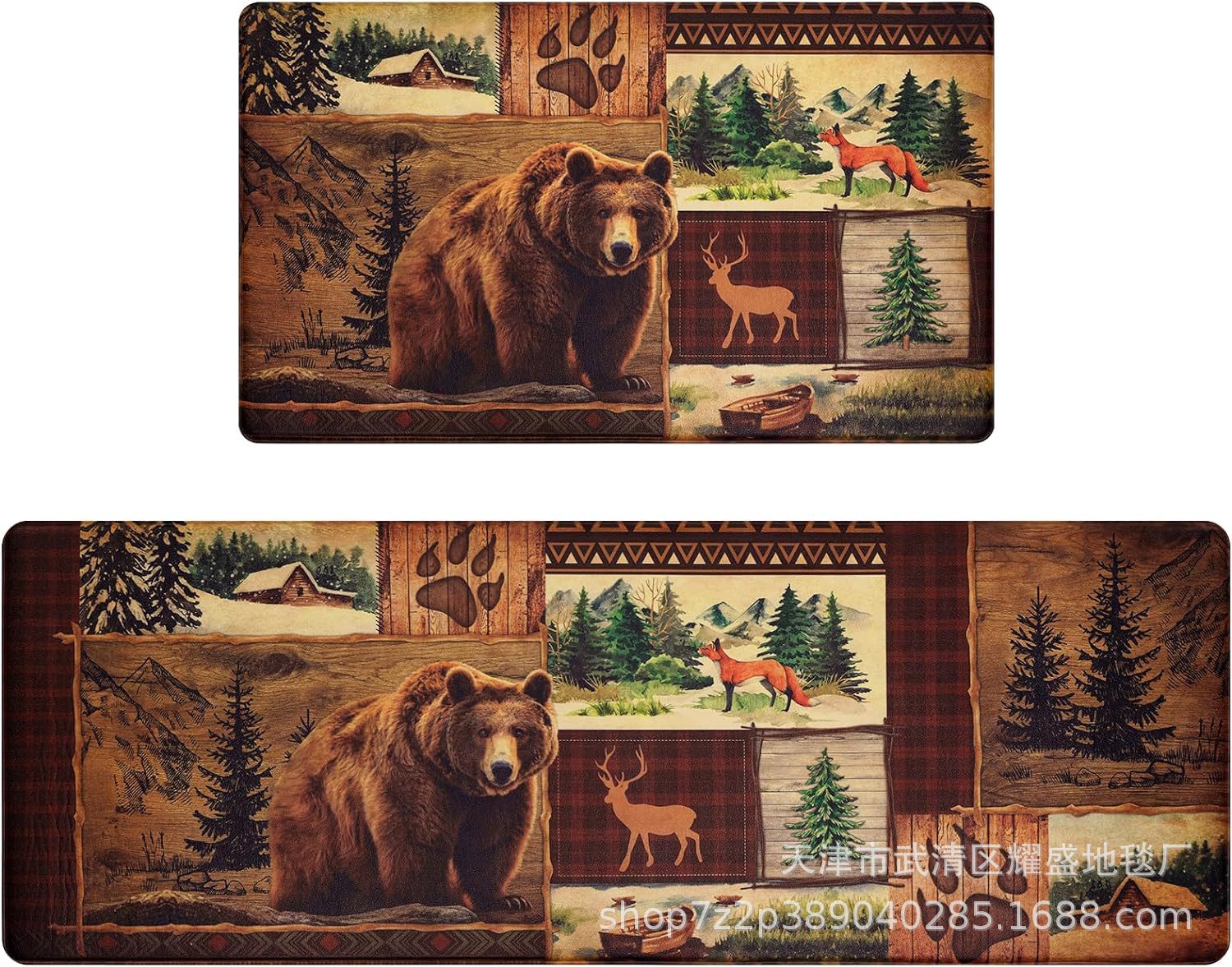 국경 간 아마존 미국 숲 동물 층 매트 입구 문 매트 주방 오일 흡수 더러운 저항 조합 투피스 세트스토어 가기