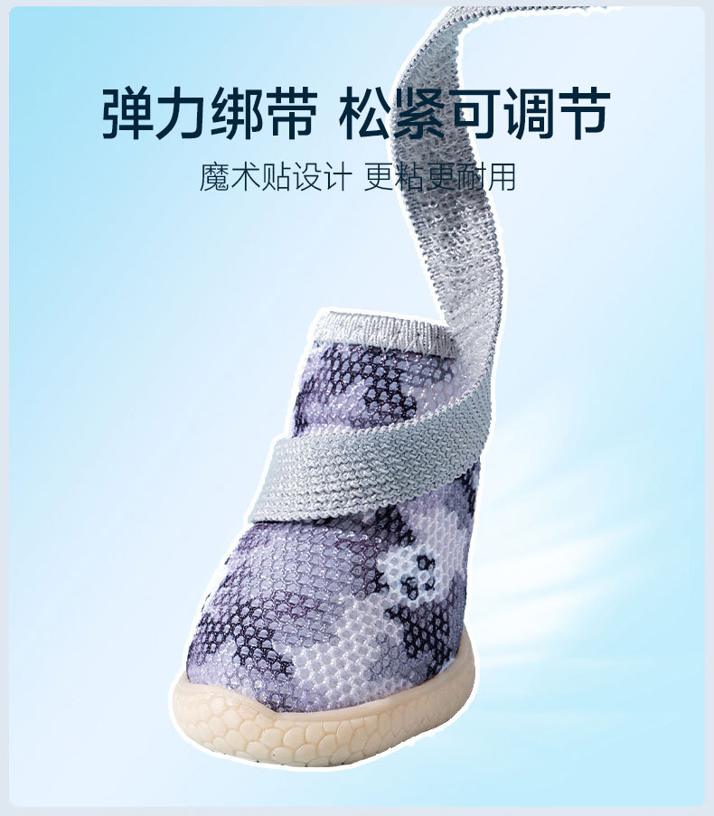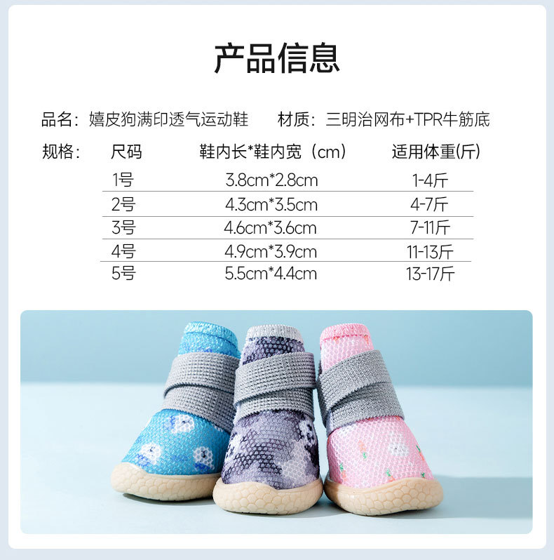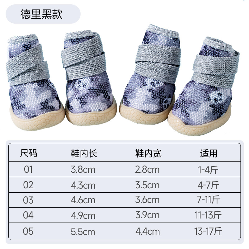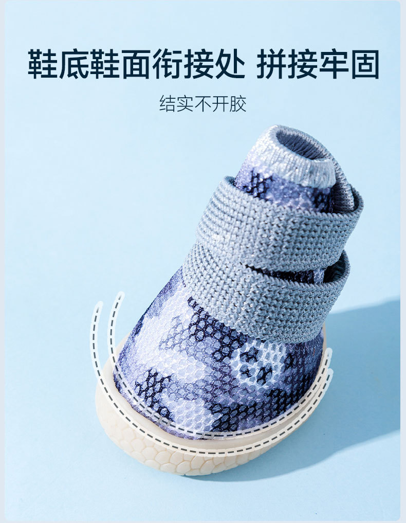 사계절 통기성 개 위장 완전 인쇄 통기성 운동화 중소형 개 외출 애완견 신발 내마모성 미끄럼 방지
