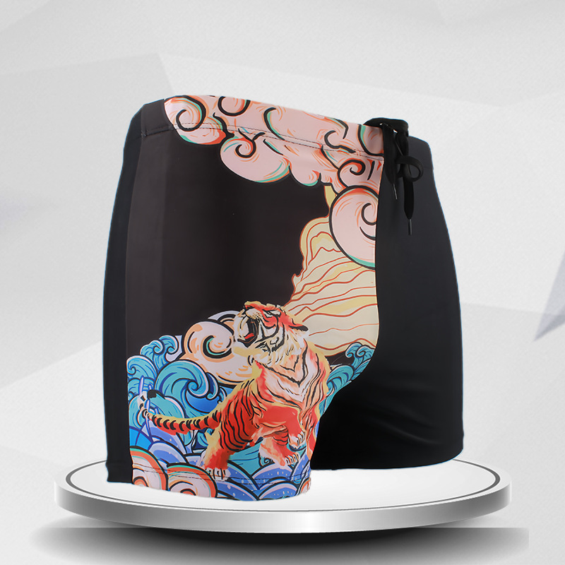 새로운 도착 남자 수영 트렁크 중국 스타일 빠른 건조 트렁크 플랫 코너 수영 트렁크 여름 느슨한 통기성 3 점 짧은 수영 트렁크
