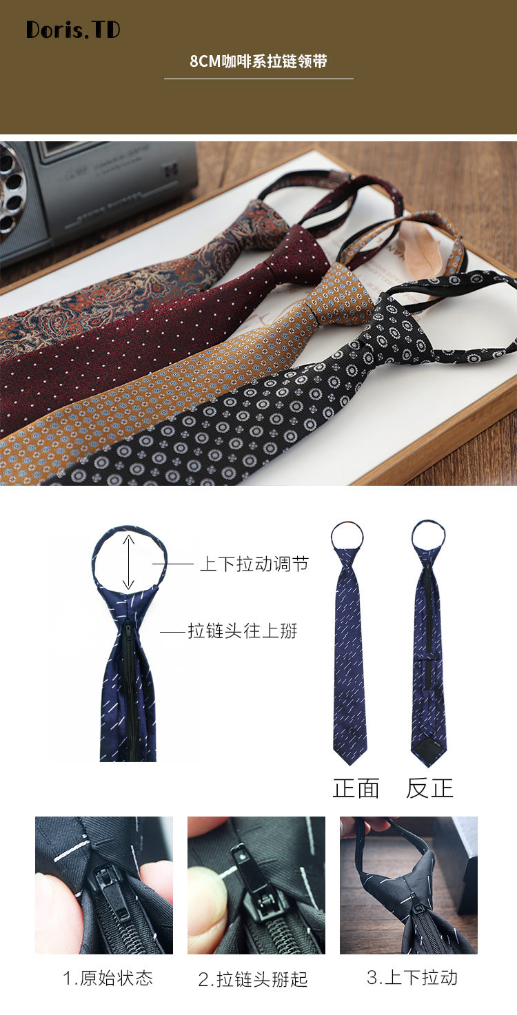 공장 재고 도매 레트로 신사 전문 원피스 8CM 커피 지퍼 넥타이 남자 작업 인터뷰