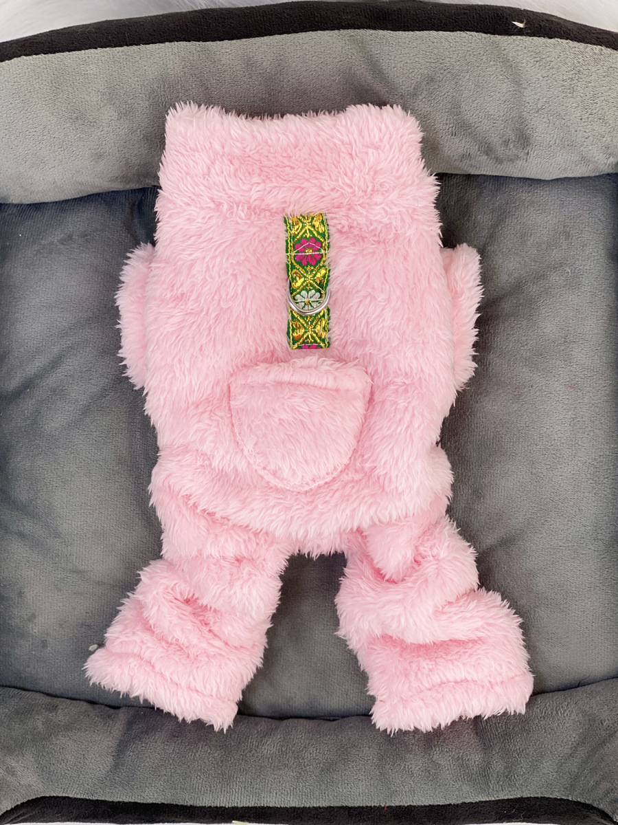 초소형 개와 고양이 옷, 가을 겨울 플러시 네발 소형 강아지, 티컵 개, 견인 로프, 두껍고 따뜻함