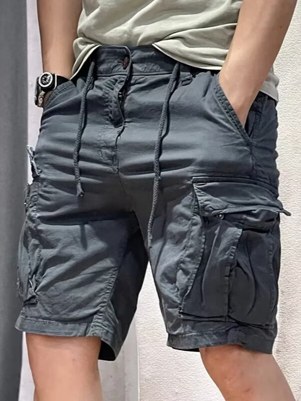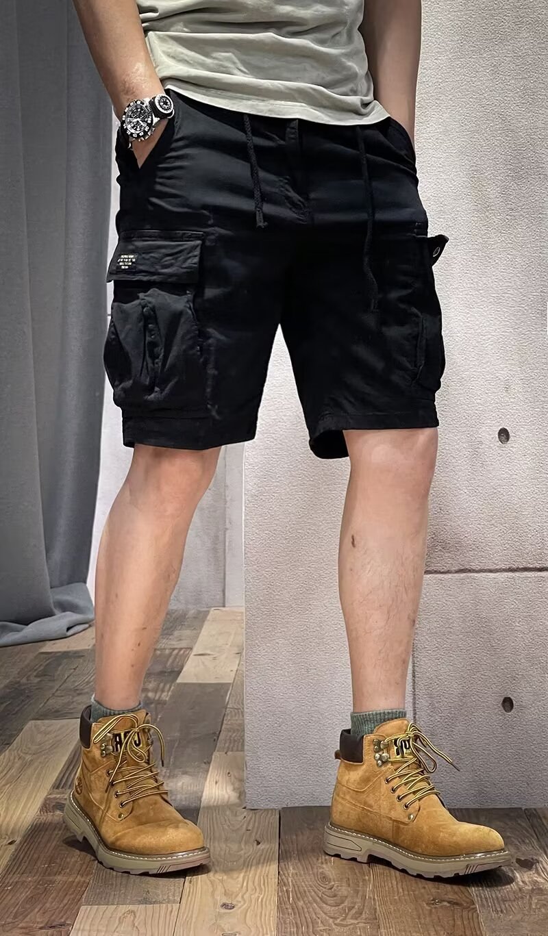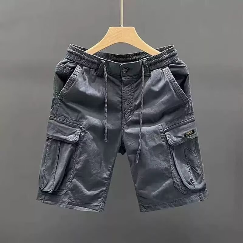 아메리칸 스타일 레트로 멀티 포켓 콕 반바지 남성 카키 외부 바지 여름 얇은 문자 면 바지