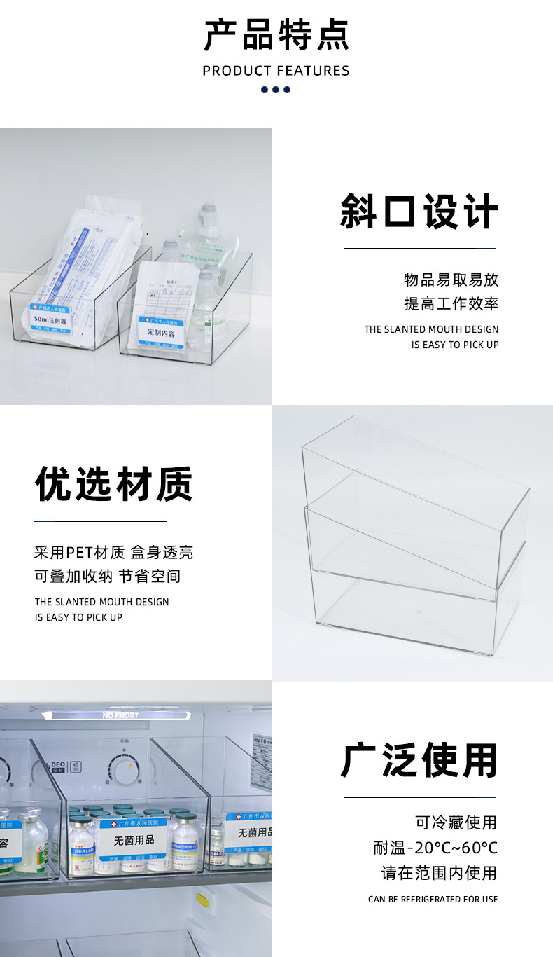 의료 비스듬한 저장 상자 투명 냉장고 선반 슈퍼마켓 디스플레이 도구 상자 수술실 보관 마감 상자 약 상자스토어 가기