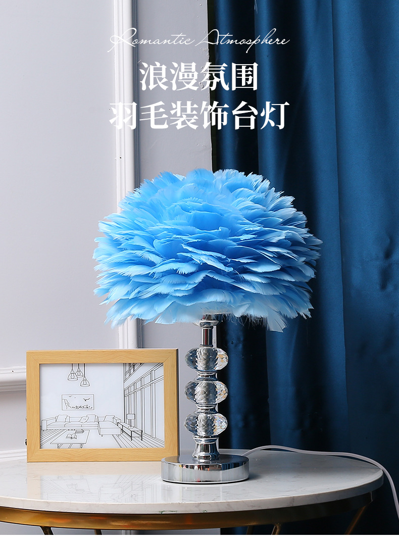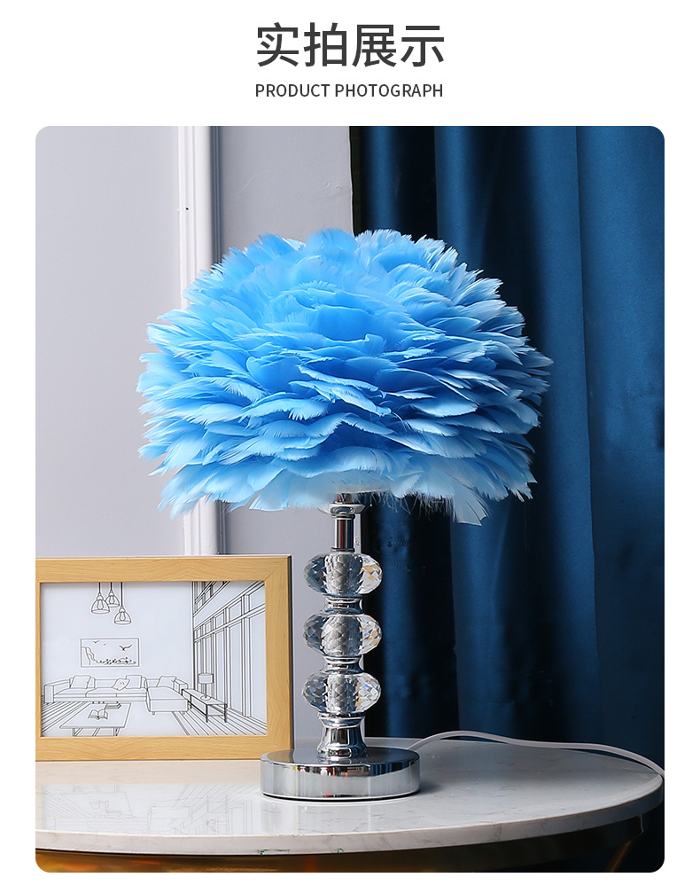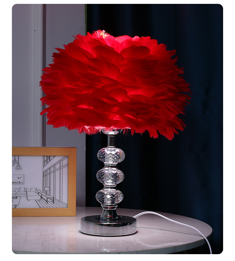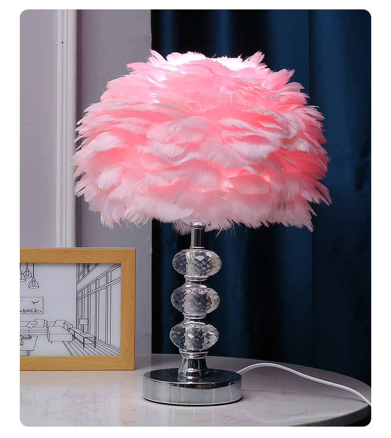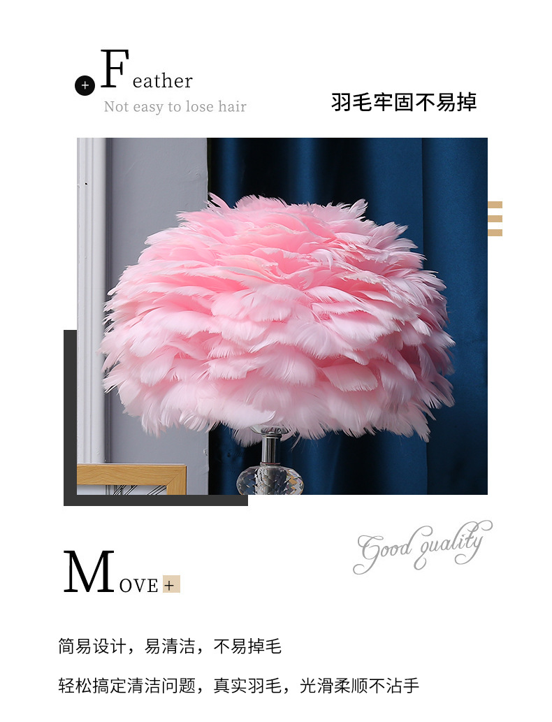 크리스탈 깃털 테이블 램프 북유럽 스타일 핑크 사이버 연예인 배경 장식 테이블 램프 소녀의 창조적 인 현대 미니멀리스트 야간 조명