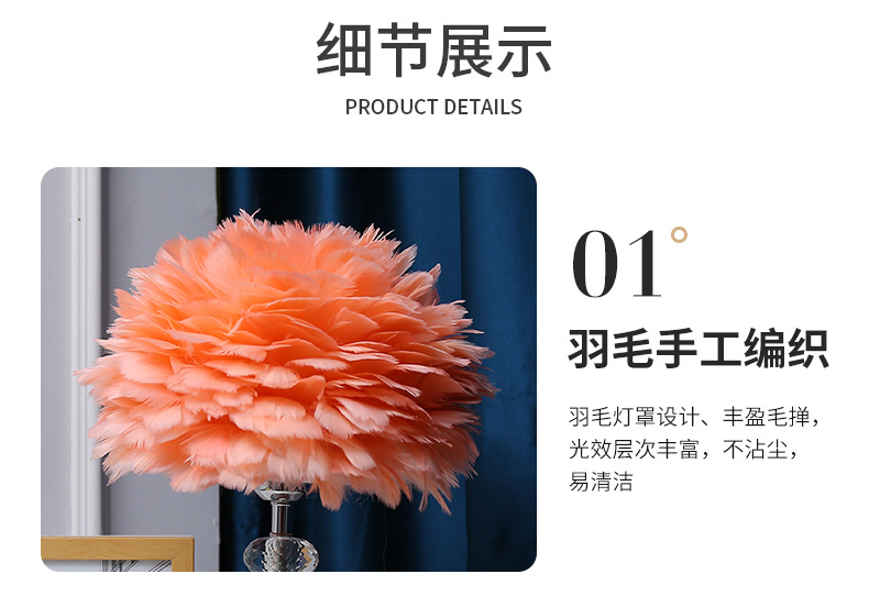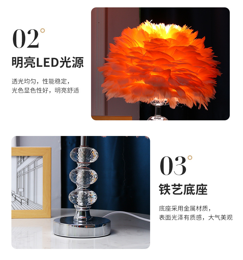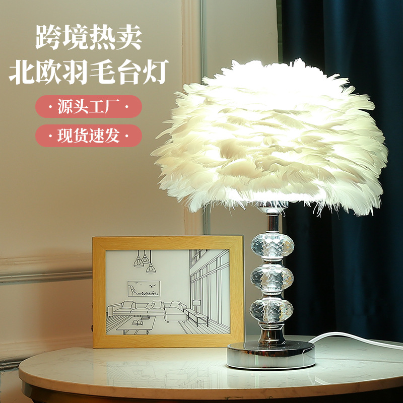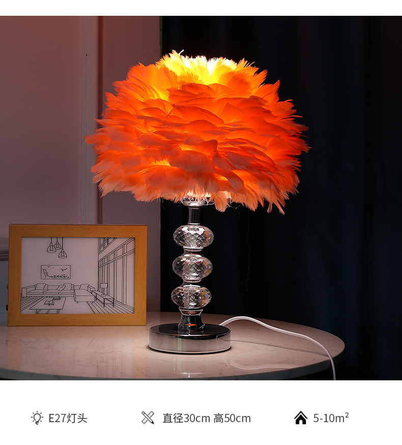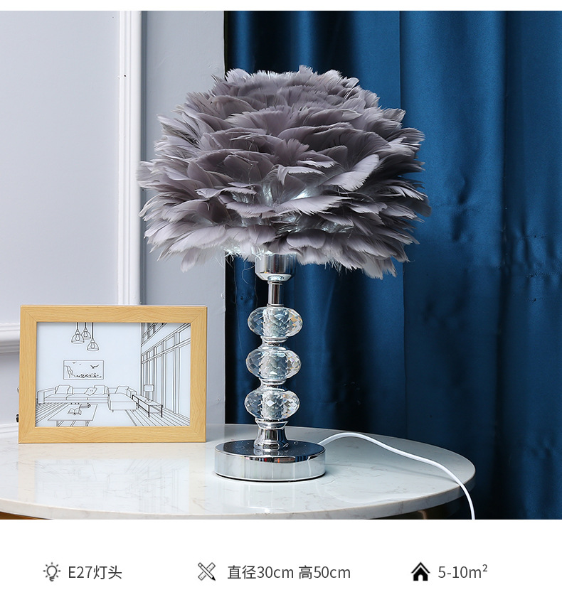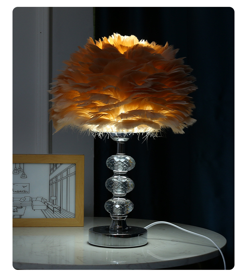 크리스탈 깃털 테이블 램프 북유럽 스타일 핑크 사이버 연예인 배경 장식 테이블 램프 소녀의 창조적 인 현대 미니멀리스트 야간 조명