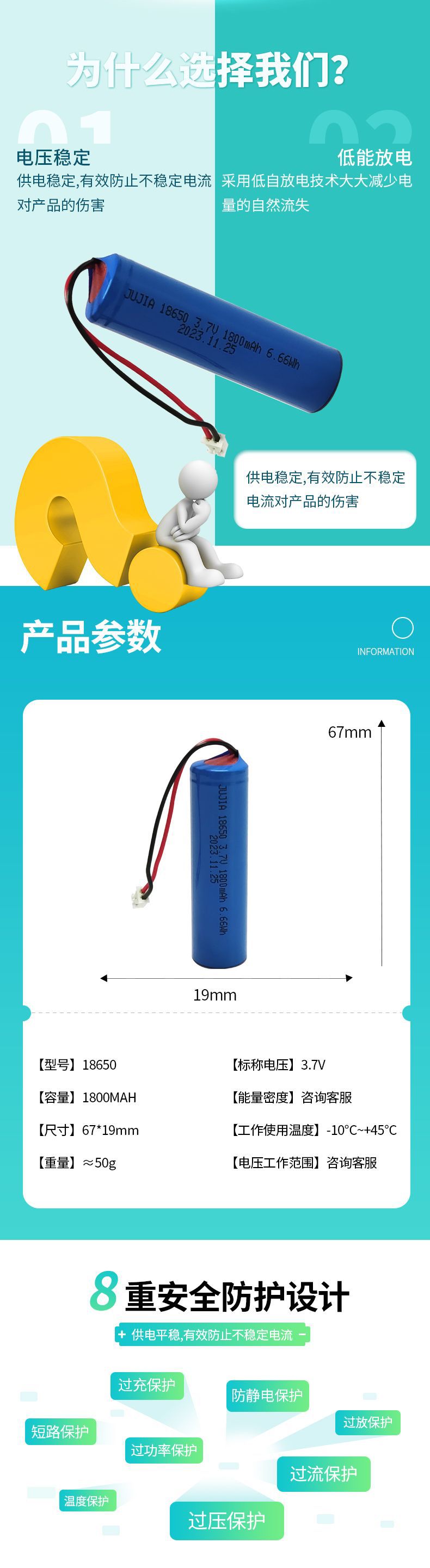 케이블 및 보호 보드가 있는 18650 리튬 배터리 3.7V, 소형 팬 스피커 장난감 실린더 리튬 배터리 팩에 적합스토어 가기