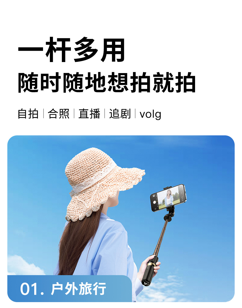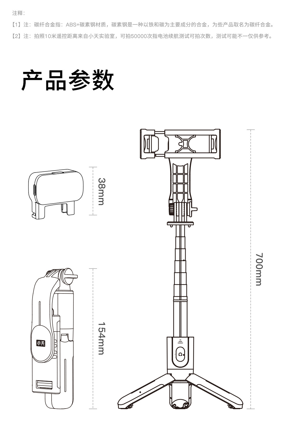 Xiaotian 미니 셀카 스틱 블루투스 셀카 안티 쉐이크 개폐식 vlog 라이브 전화 카메라 스틱 삼각대