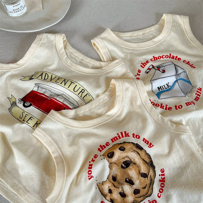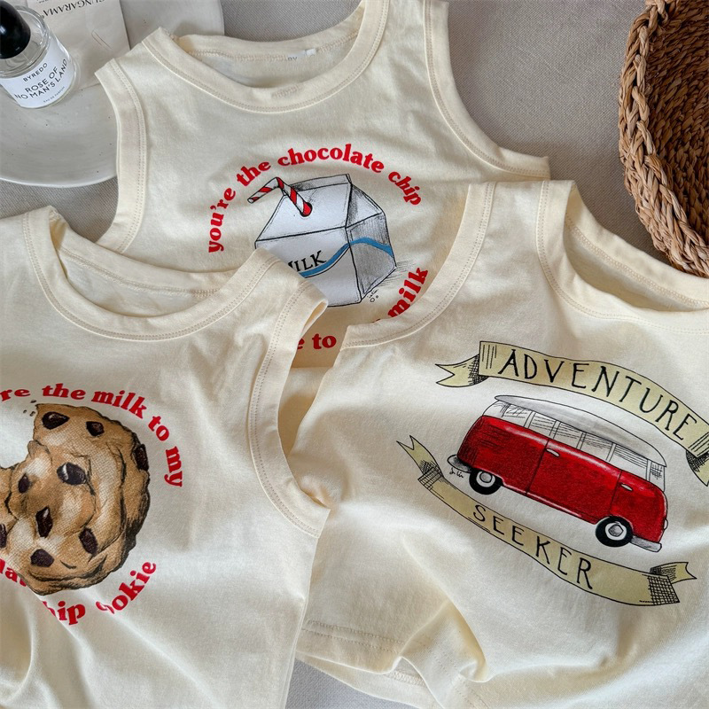 어린이 여름 면화 조끼 중소 어린이 소년과 아기의 얇은 민소매 탑 만화 인쇄 느슨한 스웨트 셔츠스토어 가기