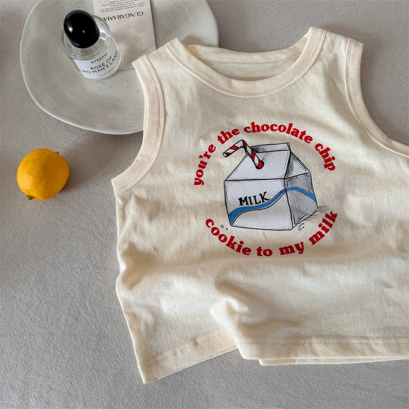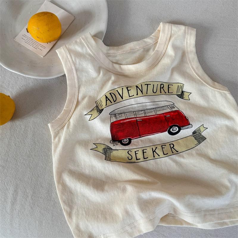어린이 여름 면화 조끼 중소 어린이 소년과 아기의 얇은 민소매 탑 만화 인쇄 느슨한 스웨트 셔츠