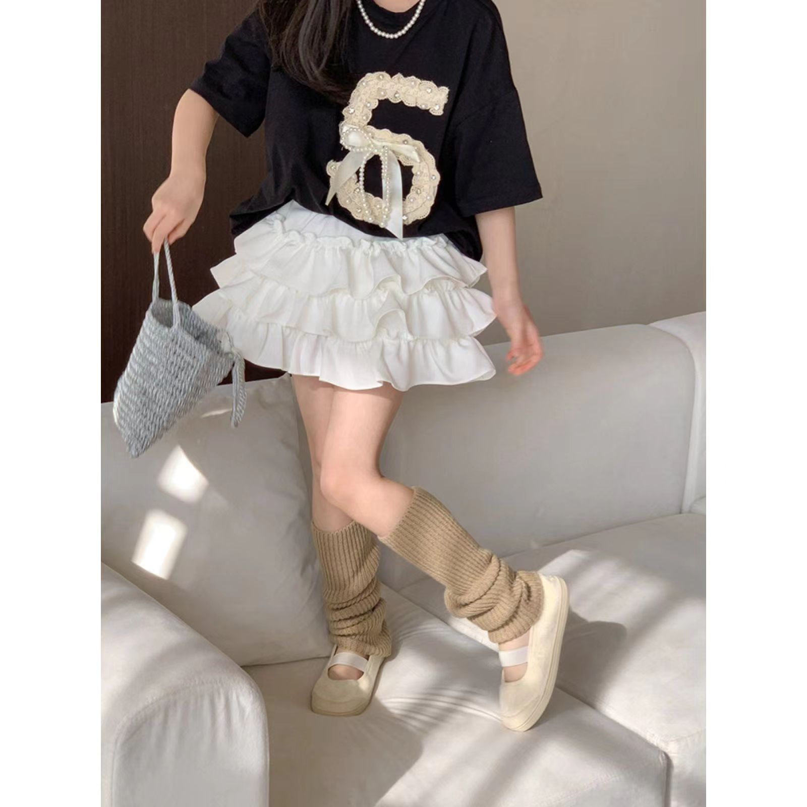 • 블랙 펄 티셔츠 화이트 케이크 스커트