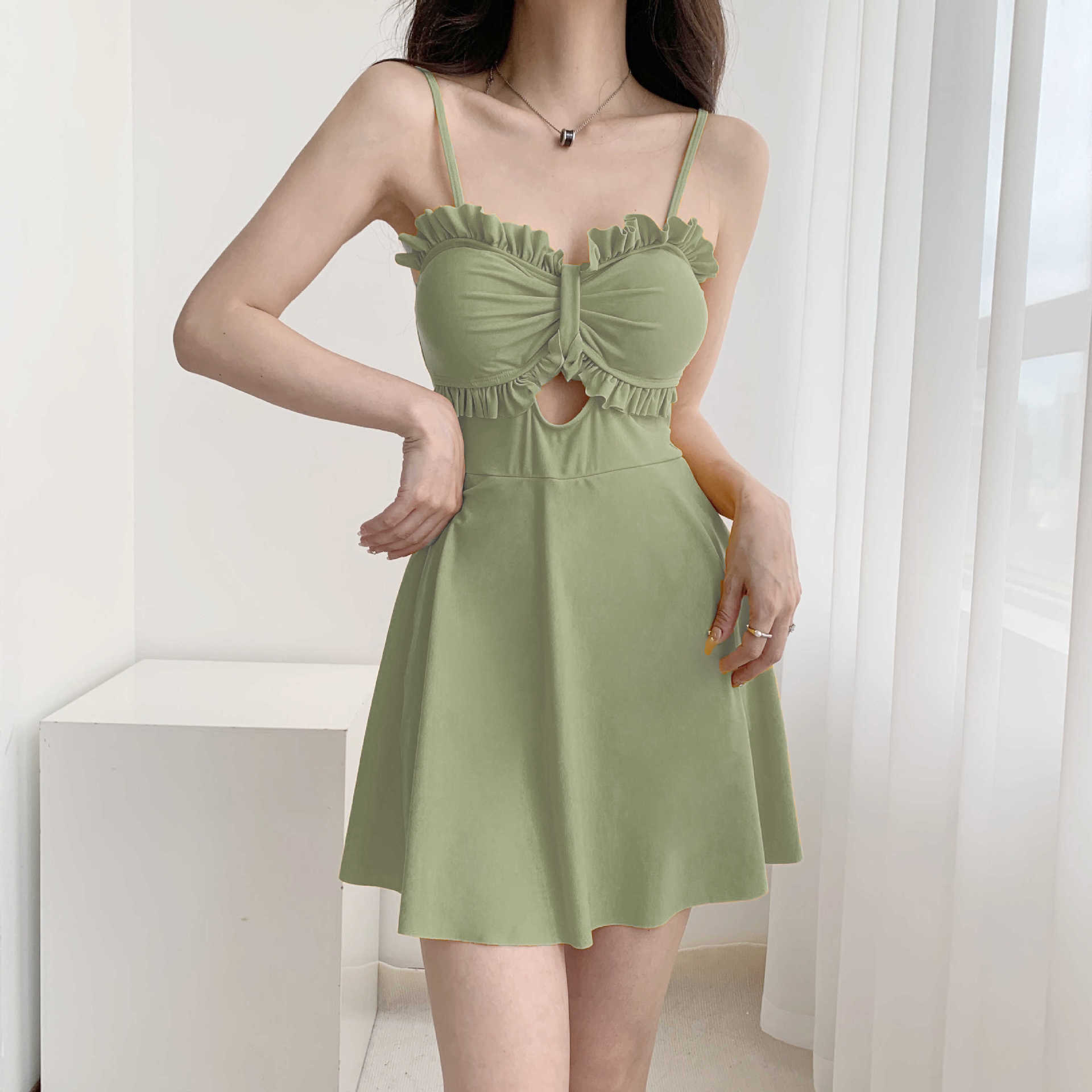 여름 신간 스타일 수영복 여성 투피스 세트 슬리밍 배꼽 커버 보수적 인 온천 수영복