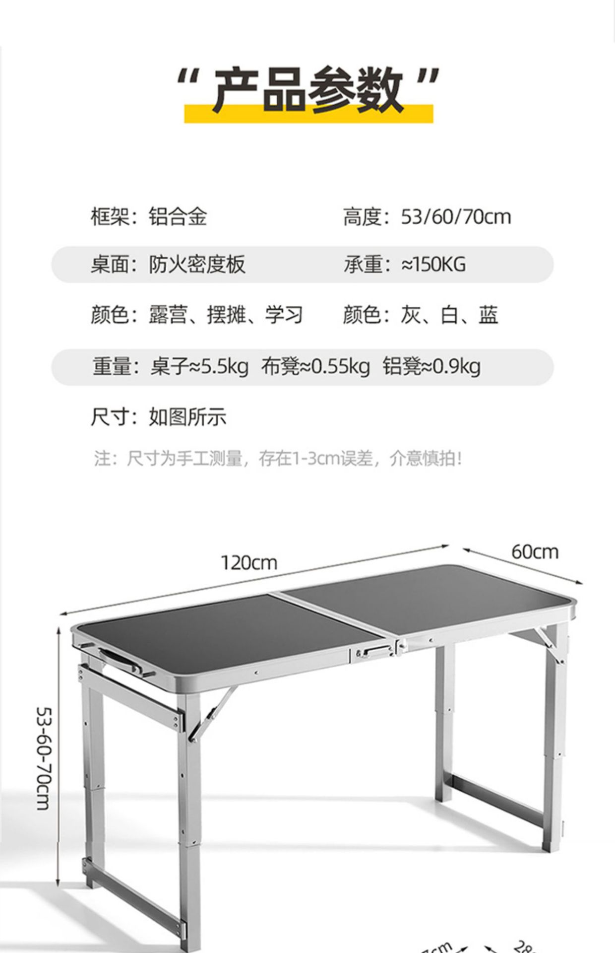 • 120cm 스카이블루 싱글 테이블 [설치 불필요, 업그레이드 및 강화된 사각 튜브]