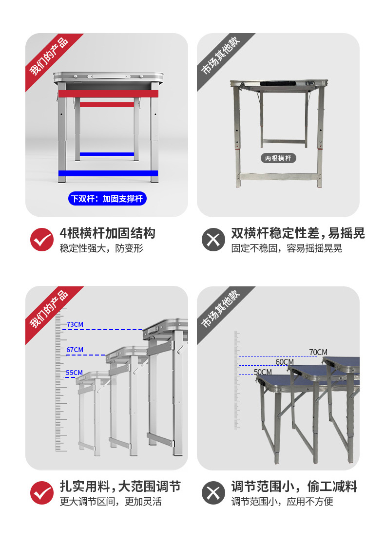 야외 야시장 노점 테이블과 의자, 휴대용 높이 조절이 가능한 캠핑 식탁, 간편한 설치, 접이식 테이블