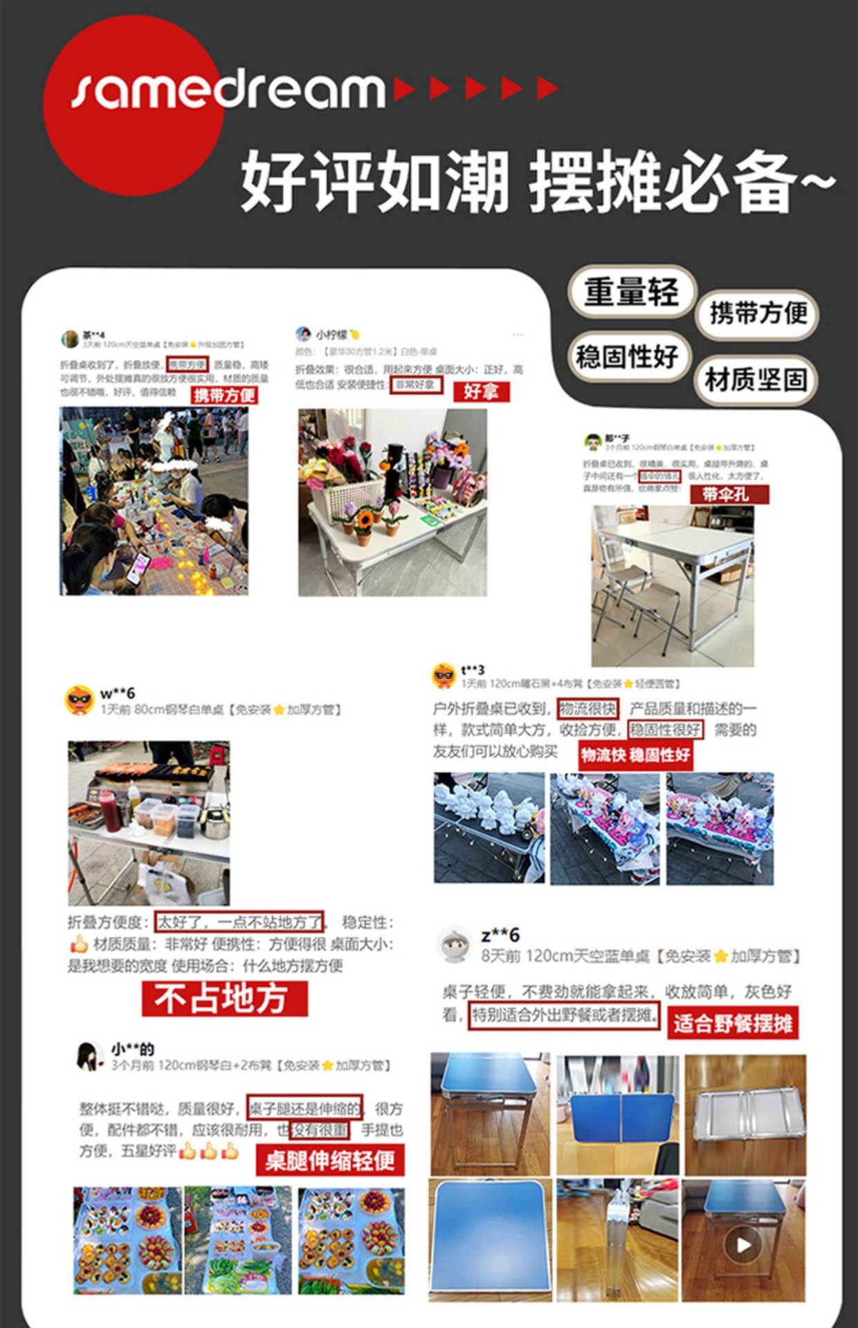야외 야시장 노점 테이블과 의자, 휴대용 높이 조절이 가능한 캠핑 식탁, 간편한 설치, 접이식 테이블스토어 가기