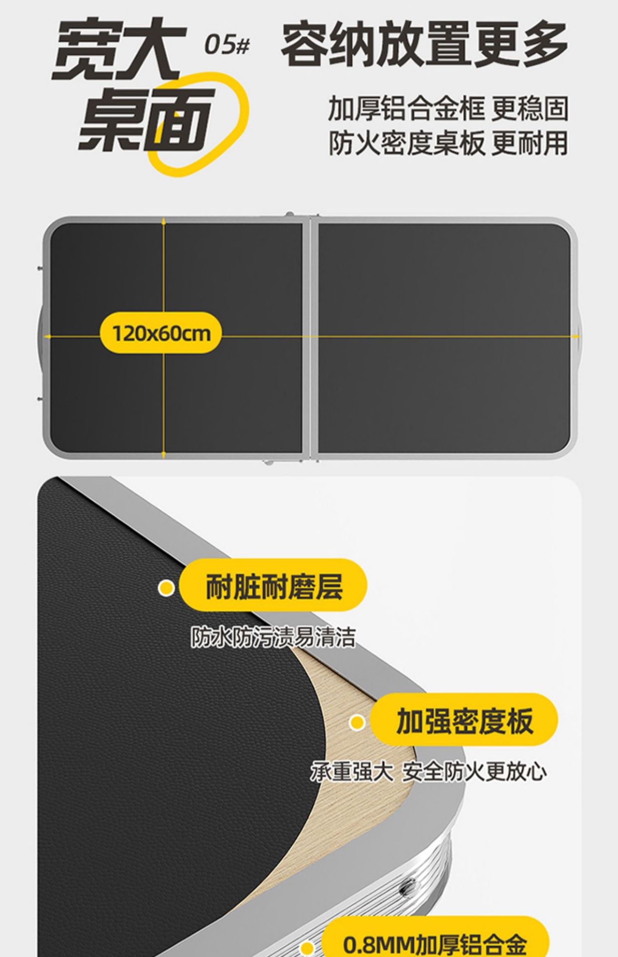 • 120cm 흑요석 블랙 싱글 테이블 [설치 불필요, 업그레이드 및 강화된 사각 튜브]