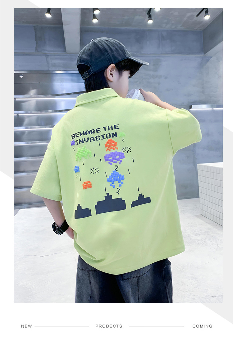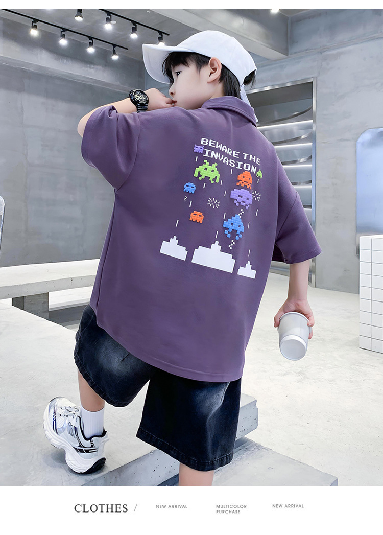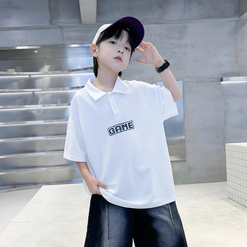 아동복 소년 여름 폴로 셔츠 반팔 2025 새로운 중대형 어린이 여름 소년 잘 생긴 여름 티셔츠 유행 T스토어 가기