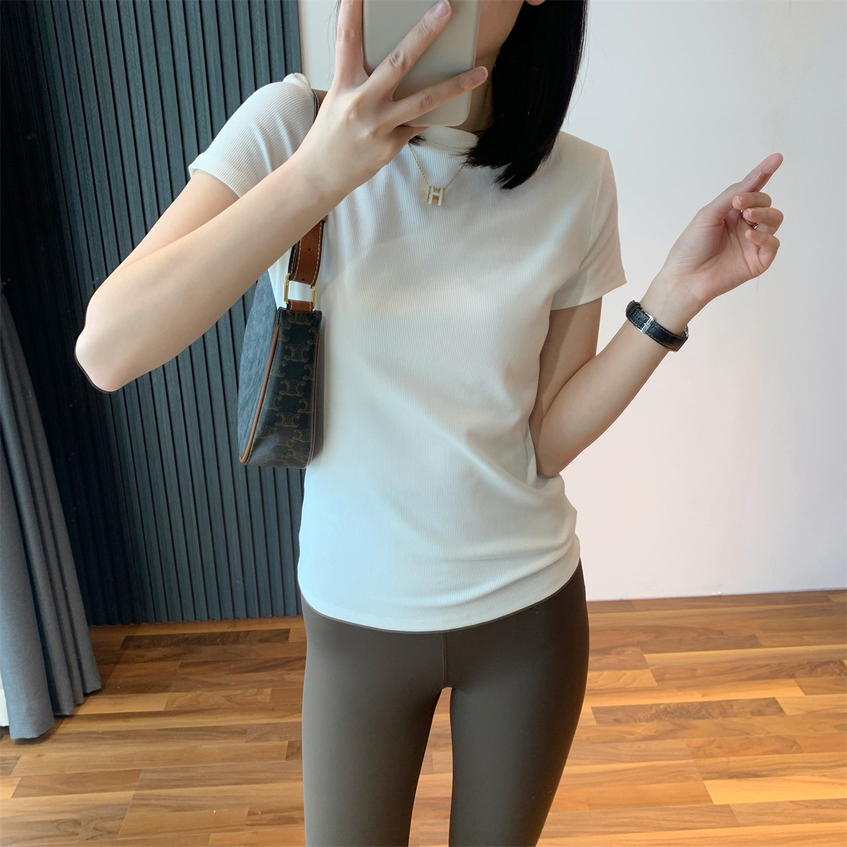 衣身细螺纹肌理,自带弹力,对身材的包容性HEN好